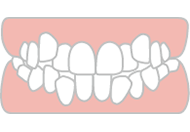 歯が重なり合って生えている状態です。歯の幅が大きい、あるいは顎が小さい場合に、歯が生えるためのスペースが不足して起こります。乳歯のむし歯や早期脱落がスペース不足の原因となることもあります。