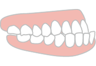 前歯のかみ合わせが逆転している状態です。上顎骨の劣成長、下顎骨の過成長といった骨格に問題がある場合と、顎の位置と大きさは問題なく歯の位置と傾きが原因となる場合があります。遺伝的要因も大きいと考えられています。