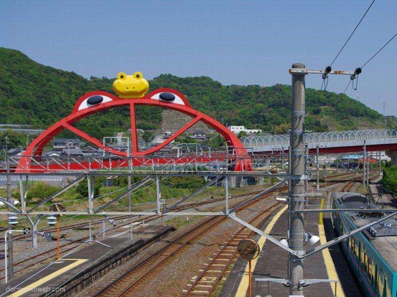 • この印南町って、こういうオブジェが至る所にあるので有名なんだそうです。私が訪れたときは日帰りの予定だったんで、残念ながら駅のすぐそばにあるこの橋のみの撮影しかできなかったんですが、いつか余裕ができたら色々見て回りたいと思っています・・・が、いかんせん遠い(笑)聞くところによると地元ではカエルで町おこしって願いを込めて作られたもののようで、饅頭屋さんではカエル饅頭なんかも売られているようですね。デザインとか景観の話するとネガティブな意見が多いように感じますが、地元の人たちは至って真剣なようなので・・・。と、カッコつけたこと言いましたが、正直な感想を言うと、やっぱナイわ~、になっちゃいますね(笑)