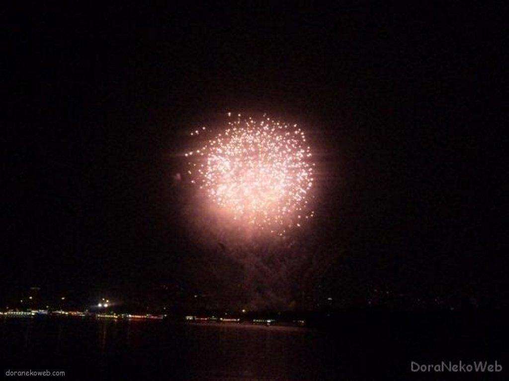 シーリアお台場の付近のレインボー公園のところで見物しました。音楽のほうはこっちからはあんまり聞こえなかったですね。
