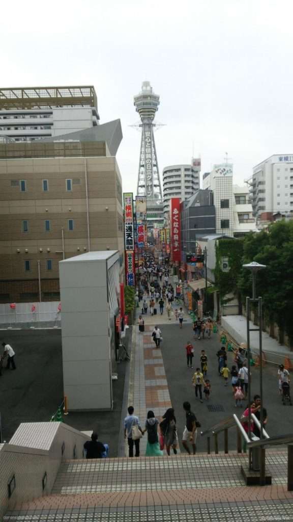 通天閣(つうてんかく)は、大阪府大阪市浪速区の新世界中心部に建つ展望塔である。2007年5月15日に、国の登録有形文化財となった。公式キャラクターは「ビリケン」。大阪の観光名所として知られる。現在の通天閣は二代目で、1956年に完成した。通天閣観光株式会社(つうてんかくかんこう、Tsutenkaku Kanko Co., Ltd.)により運営されている。避雷針を含めた高さは108m(塔自体の高さは100m。避雷針は2016年に3mのものから8mのものに更新している)。設計者は、ほぼ同時期にできた名古屋テレビ塔、東京タワーなどを手がけた内藤多仲。建設を施工したのは奥村組である。「通天閣」とは、「天に通じる高い建物」という意味で、命名したのは明治期の儒学者、藤沢南岳である。二代目の通天閣は、入場ゲートや展示スペースなどを設けた低層階(地下1階~2階)と、展望台などのある高層階(3階~5階)で本体を構成。入口と2階を往復するエレベーター(低層エレベーター)と、展望台のある4・5階と2階を往復するエレベーター(展望エレベーター)を別々に稼働させている。このような構造のため、入場者が入口から展望台へ向かう場合には、基本として2階で低層エレベーターから展望エレベーターに乗り換える仕組みになっている。低層エレベーターについては、本体とは別に建てられた白色・円柱形の専用棟(エレベーター棟)の中で稼働。エレベーター棟の2階と本体の2階を渡り廊下で連結している。このようにエレベーター棟を本体と分けた構造は、2014年(平成26年)10月から2015年(平成27年)6月まで実施された免震化工事で功を奏したという。その一方で、再建当初から2001年までは、東洋オーチス・エレベータ(現在の日本オーチス・エレベータ)製の円柱形エレベーターを低層用に稼働していた。乗りかごが円柱形のエレベーターが設置されたのは、通天閣が世界で初めてとされる。なお、2001年からは、低層エレベーターを日立製作所製の円柱形エレベーターに更新。本体では、展望エレベーターの稼働中に、「ビリケンのイラストや、夜空に浮かぶビリケン座をエレベーターの天井に浮かび上がらせる」という光の演出を施している。本体の直下を市道が通っている関係で、低層階の1階部分(エントランス)には、市道をまたぐ格好で鉄製の4本の脚(脚部)が四方に据えられている。再建当初から2013年12月19日までは、低層エレベーターおよび、エレベーター棟の2階へ通じるらせん階段の乗降口を1階の東側に設置。展望台への入場券(展望券)を、本体の2階で販売していた。しかし、入場者数の増加などを背景に、同年12月20日から展望台への入場ルートを変更。地下1階に展望券売場と低層エレベーターの乗降口を新設するとともに、同年6月30日まで地下1階の一角で営業していた「通天閣地下劇場」の跡地を、入場者の待機スペースなどに活用している。このため、展望台への入場者は、ルート変更前から脚部の間に設けられている地下通路への入口(2ヶ所)から階段でいったん地下1階まで移動。地下1階で展望券の購入と低層エレベーターへの搭乗を済ませてから、従来と同じく、2階で展望エレベーターに乗り換えるようになった。