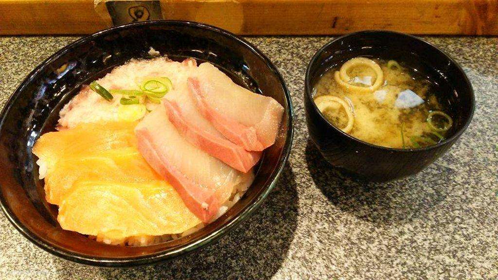 Wikipediaから引用 海鮮丼(かいせんどん)とは、白飯の上に魚介類の刺身などを盛りつけた丼物料理。戦後に誕生した料理で、北海道、東北など北日本から全国に広まった。江戸前のちらし寿司から派生したものという説もある。江戸前寿司におけるちらし寿司は、酢飯に握り寿司用の種を飾り乗せした料理であるが、海鮮丼は一般に酢を加えない温かい白飯を台とする。ただし酢飯を用いたものを海鮮丼と呼ぶこともあり、両者の区別は曖昧である。また寿司屋ではなく海産物中心の食堂や海鮮料理店で出される料理であるため、ちらし寿司とは異なり寿司屋独特の仕事を施した種は用いられない。よく使用されるのはマグロ、ホタテ、サーモン、イカ、エビ、タコ、カニ、イクラ、ウニなどの北日本で水揚げされる魚介類の刺身である。丼飯なので特に作法はない。味付けされていない生魚が用いられている場合は、わさび醤油を全体にふりかけたり、手塩皿に取った醤油に種をその都度つけながら食べたりする。 返信