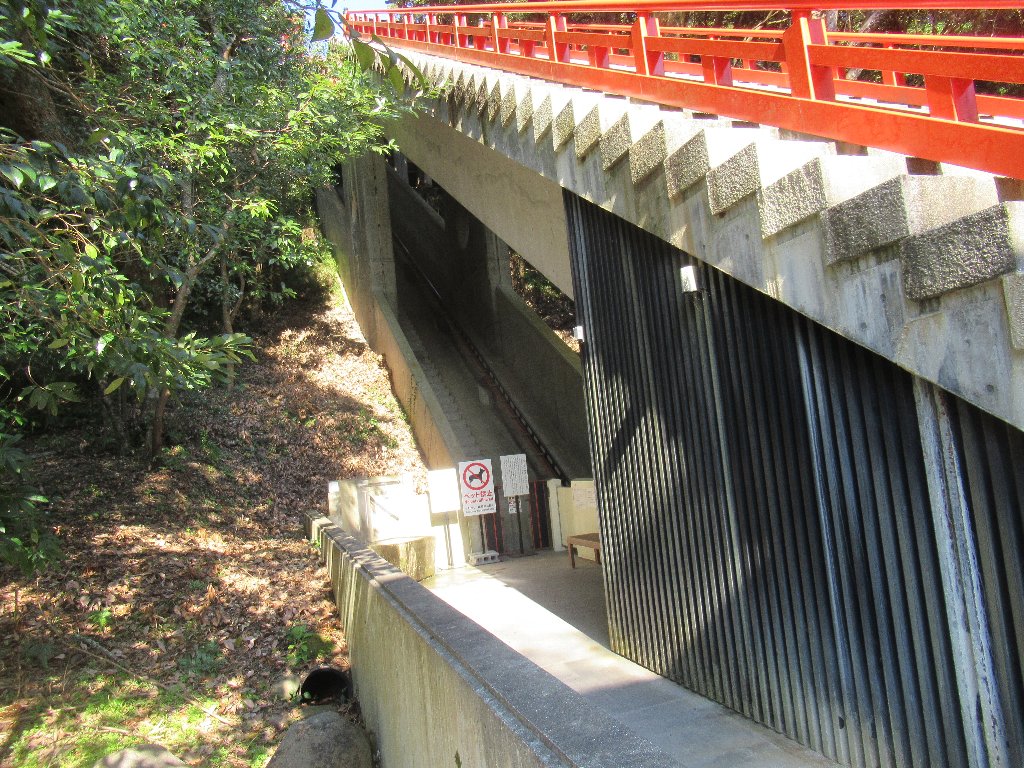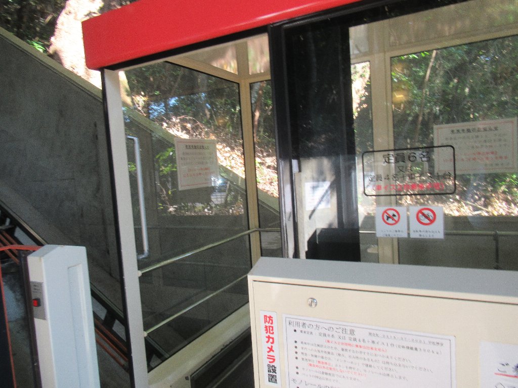モノレールと呼ばれている乗物でございます。確かに自走式モノレールでございますが、ほぼ斜行エレベーターでございますな。先日訪れた鳴門のすろっぴーのように乗車の仕方はエレベーターと同じでございます。維持協力金として1回100円以上を上階にある募金箱に投入するように、との記述や、高齢者やベビーカー、身体障がい者のためのものなので健常者は利用をお控えくださいなどの記載がありますが、本日の利用者を端から眺めるに、若めの家族連れ筆頭にそんなのカンケーねーみたいにシカトしている罰当たりな客だらけですやん。元首相夫人の立ち振る舞い然るに、この国は一体どーなってんのー。