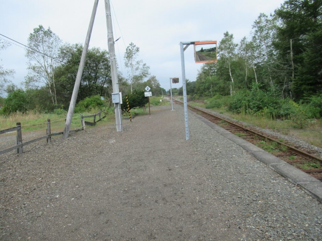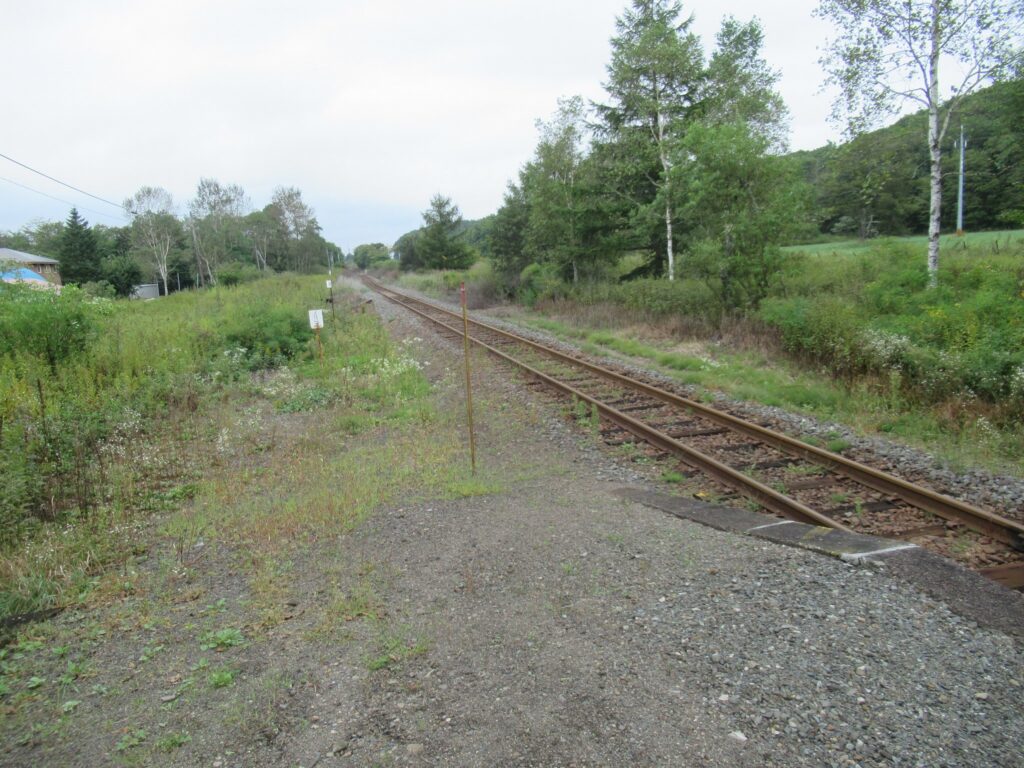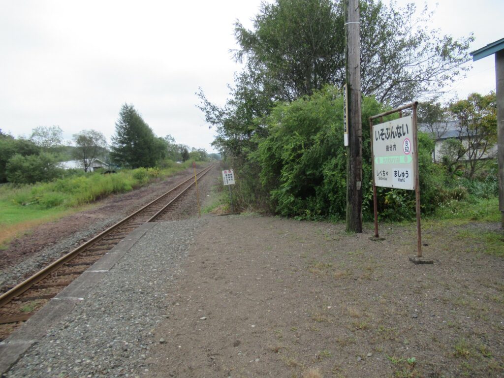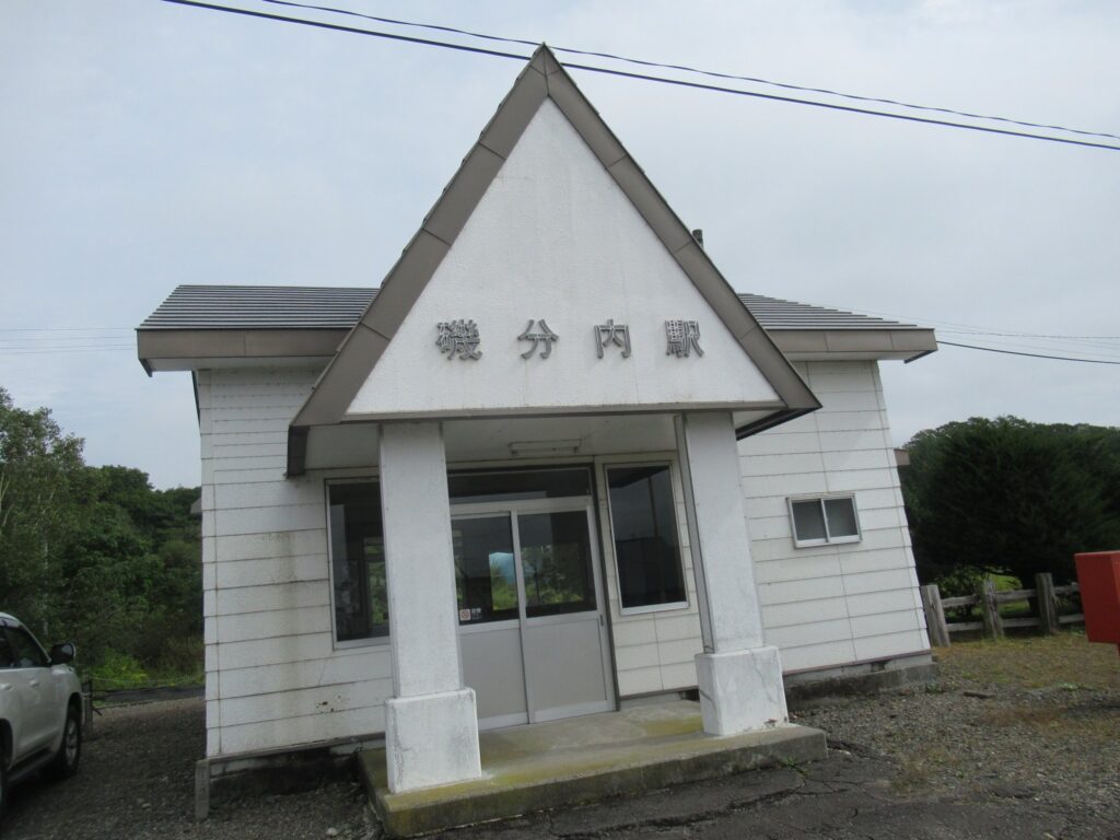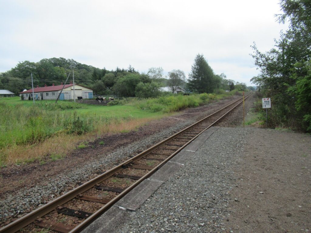 DoraNeko釧網本線の磯分内駅でございます。現在は単式1面1線の棒線駅で無人駅でございますが、かつては相対式2面2線の交換可能駅で、貨物ホームもあったそうでございます。また、ここから日本甜菜製糖磯分内工場専用線が接続していたのだそうでございます。駅のホームから牛が見えます。