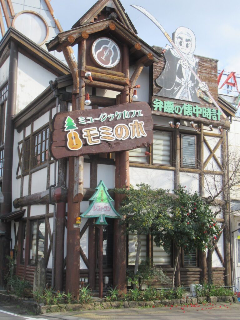 DoraNeko紀伊田辺駅前広場近くにあったユニークな建物でございます。建物の外観ならびにミュージックカフェモミの木と弁慶の懐中時計なる看板がユニークでございますな。ここの裏側は弁慶町商店街という商店街になっております。紀伊田辺は弁慶推しでございますな。