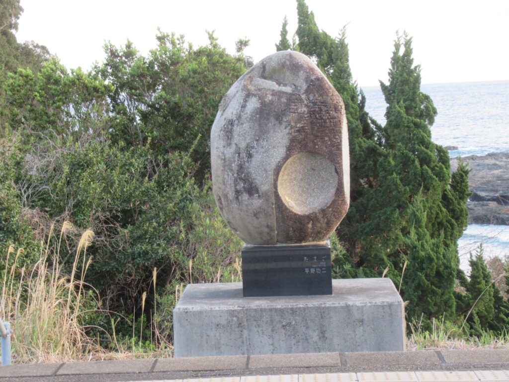 DoraNeko紀勢本線の和深駅でございます。きのくに線の愛称区間に含まれております。海岸まで山が迫るリアス式海岸沿いにある地上駅で、単線区間にある相対式2面2線の列車交換可能駅となっております。かつては単式島式複合型の2面3線、いわゆる国鉄型配線の駅でございましたが、一番外側の1線は廃止され撤去されております。手前駅舎側に貨物用ホームが残っております。無人駅で、木造駅舎およびホーム間を連絡していた跨線橋が老朽化のため撤去され、駅舎はコンクリート製の簡易な駅舎に替えられております。跨線橋が撤去されたため駅舎から向い側ホームへの移動は直接行くことが出来ず約140mほどの距離がある迂回路を使う必要があり、駅舎壁面にその旨が表記されております。その向かい側ホームにはモニュメント「たまご」が置かれております。海岸から見て駅は高台に位置しており、南紀熊野ジオパーク和深海岸が目の当たりでございます。