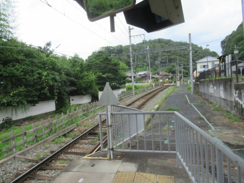 DoraNeko近畿日本鉄道生駒線の元山上口駅でございます。単線区間にある単式1面1線の地上駅で、棒線駅となっております。平屋建て駅舎のある無人駅となっております。駅前は規模の小さなバスターミナルになっております。450mほどの位置に元々かんぽの宿大和平群だった亀の井ホテル大和平群がございます。駅名の元山上口の元山上とは付近にある千光寺のことでございますな。