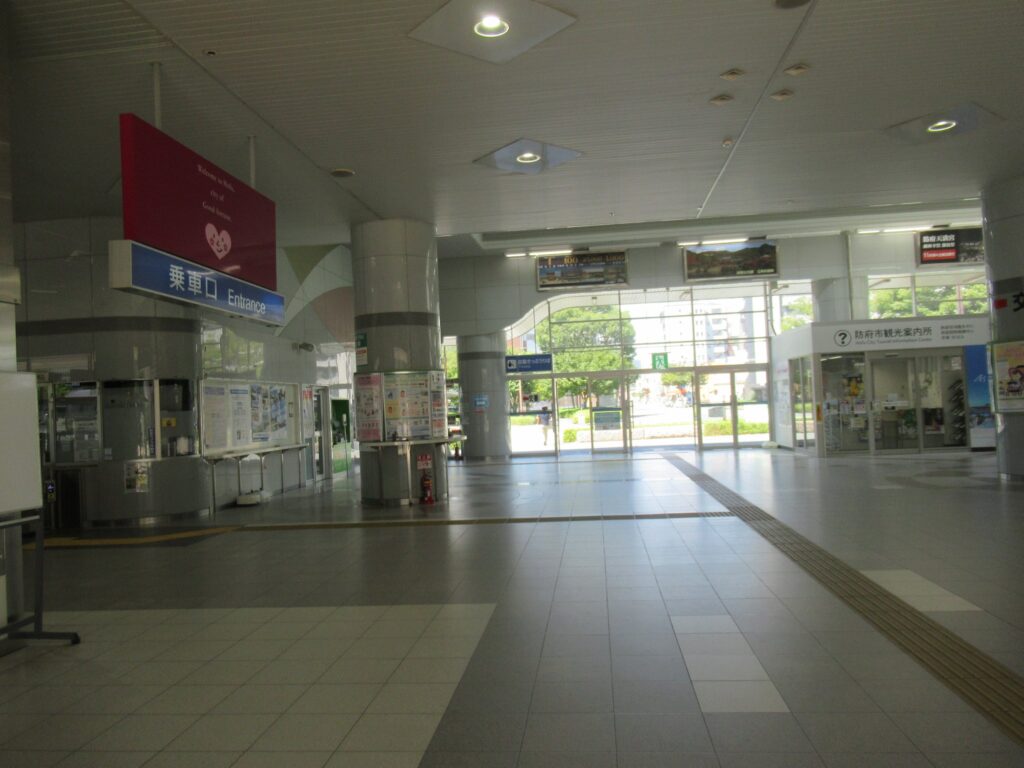 DoraNeko山陽本線の防府駅でございます。高架複線区間にある島式1面2線の高架駅でございます。高架化が完成したのは1994年(平成6年)でございますですね。地上駅時代は単式島式複合型2面3線と貨物設備を備えた駅でございました。貨物営業廃止後に規模縮小の上で高架化されたという経緯ですな。