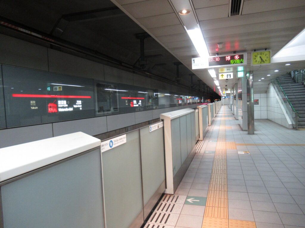 DoraNeko鉄輪式リニアモーターミニ地下鉄、福岡市交通局福岡市地下鉄七隈線の渡辺通駅でございます。複線区間にある島式1面2線の地下駅で、駅のシンボルマークはかつてここを走っていた西鉄市内線の路面電車でございます。博多駅と並んで、マーチングの強豪校で知られる精華女子高等学校などの最寄り駅となっております。