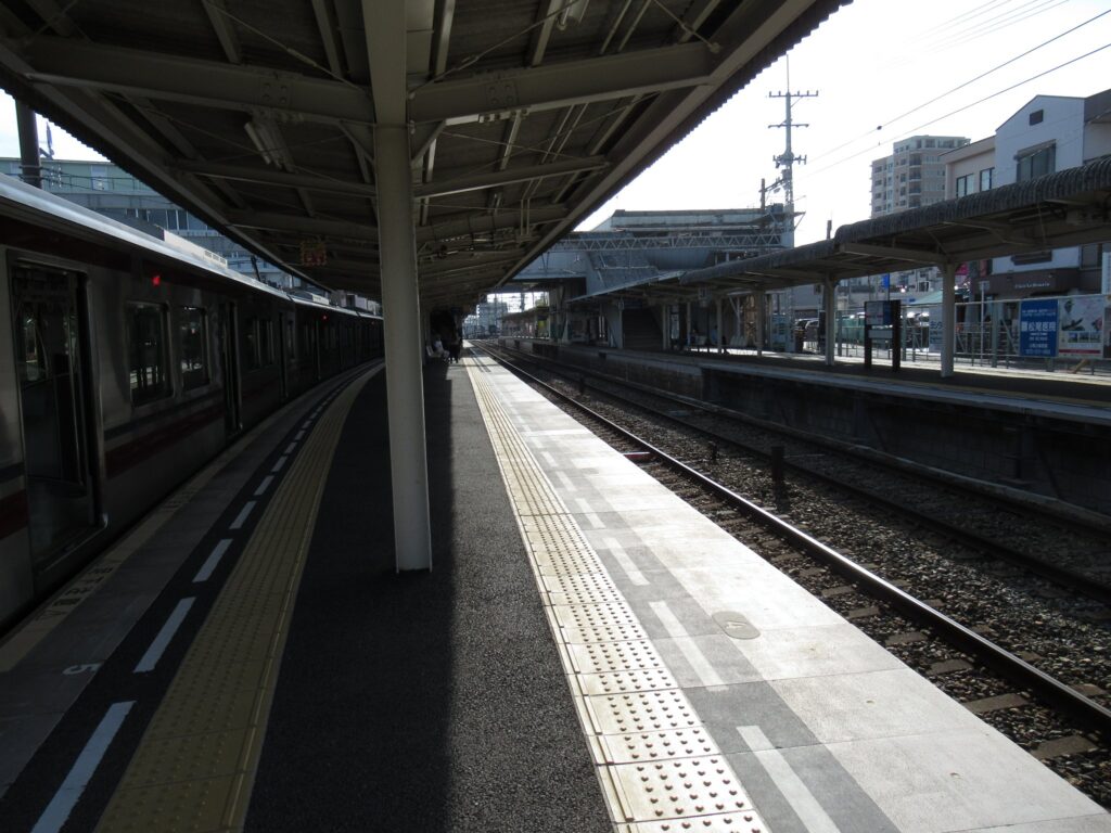 西日本鉄道天神大牟田線の西鉄小郡駅でございます。複線区間にある島式2面4線の地上駅となっております。日中は急行と普通の緩急接続が行われます。特急は通過する駅でございます。駅舎とホームは改札口のある上屋付き跨線橋で連絡しております。昨年(2022年)2月以来、二度目の訪問でございます。そういえば前回は雨の中の訪問でしたですな。