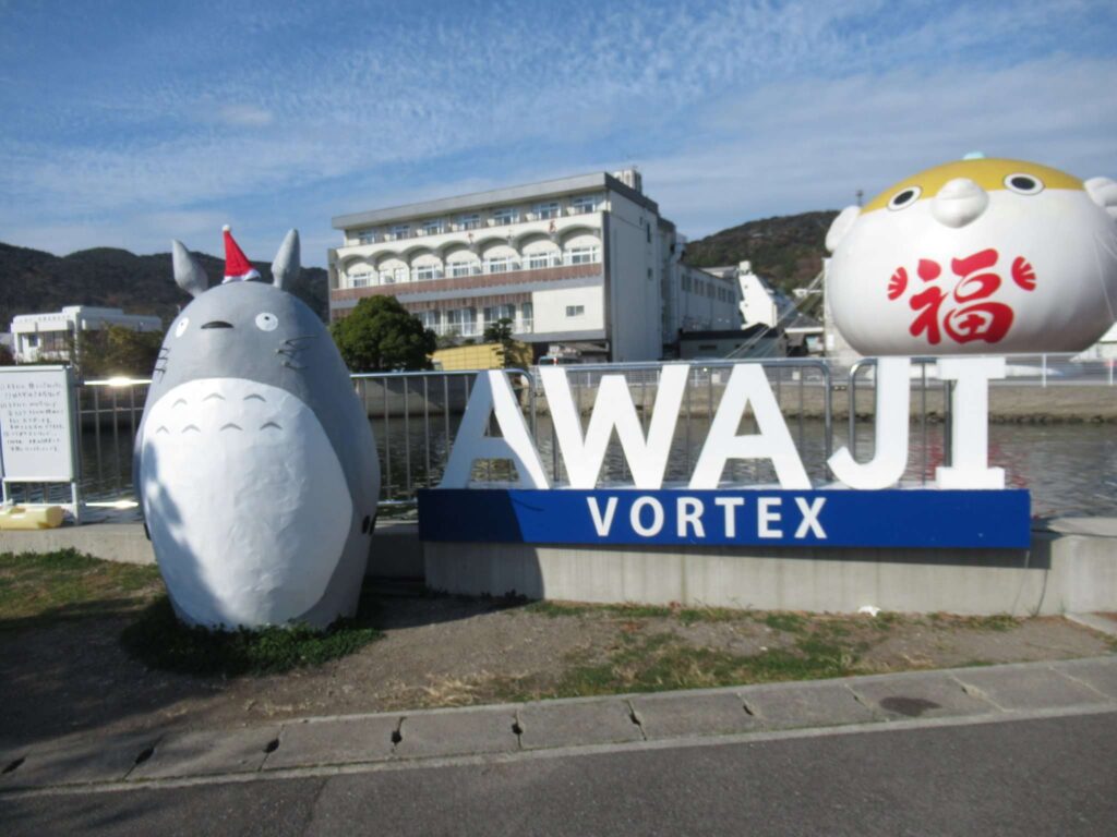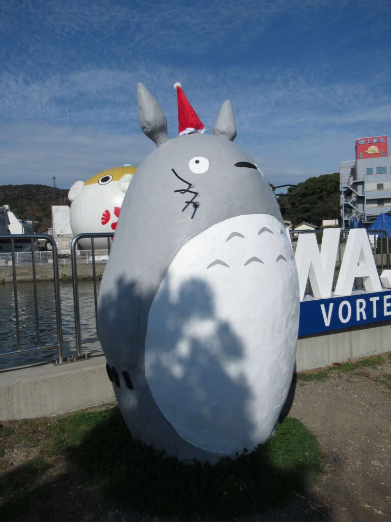 DoraNeko道の駅福良のすぐ近く、つまり福良港の一角にあるフードスタンドゾーンにあったトトロのモニュメントでございます。よく見ると手作りですなコレ。時節柄サンタの帽子が頭に乗っておりましたw AWAJI VOLTEXのロゴモニュメントが隣にございますが、これって渦潮を世界遺産に登録させようよムーブメントのロゴなんですね。淡路の渦ですな。後で調べたら、やっぱりこのトトロはフードスタンドのオーナーの手作りみたいですわ。