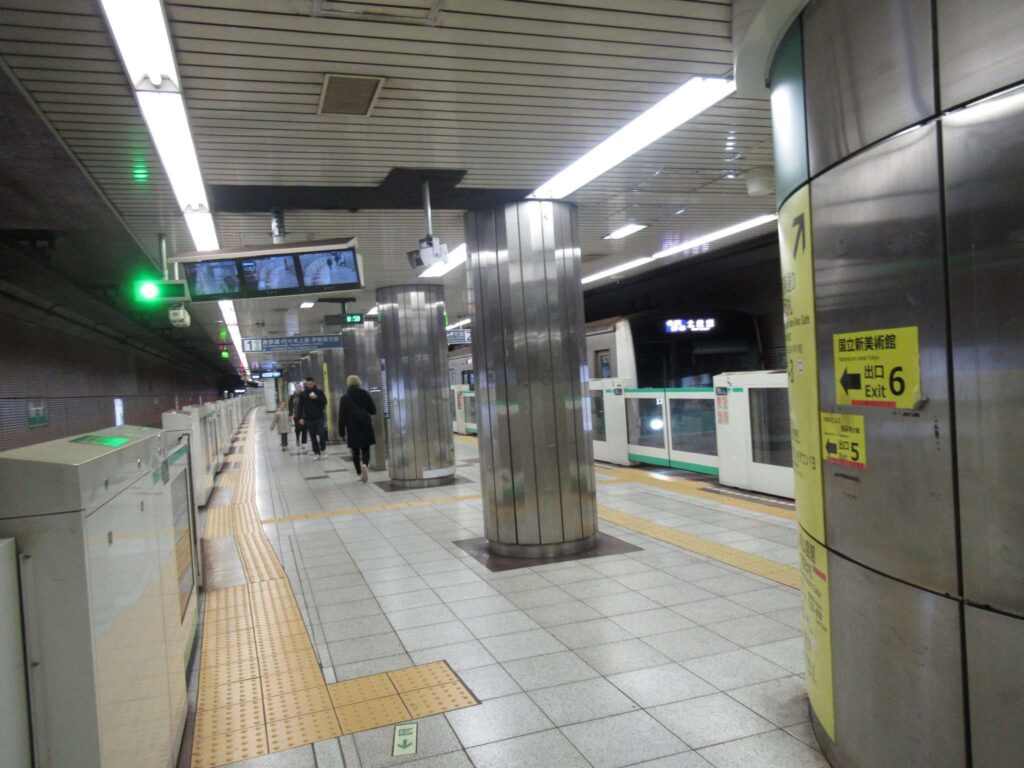 DoraNeko東京メトロこと東京地下鉄千代田線の乃木坂駅でございます。島式1面2線の地下駅となっております。直交している外苑東通りを南下すれば六本木交差点、北上すれば青山一丁目でございまして、その中間地点にある駅でございます。かつては少し寂し気なロケーションでしたが、国立新美術館や東京ミッドタウンが出来たこと、乃木坂の名前がアイドルグループのお蔭で著名になったことなどで様相が随分変わりましたね。オサレなイメージに変化したらしいですな、知らんけど(←知らんのかいw)。