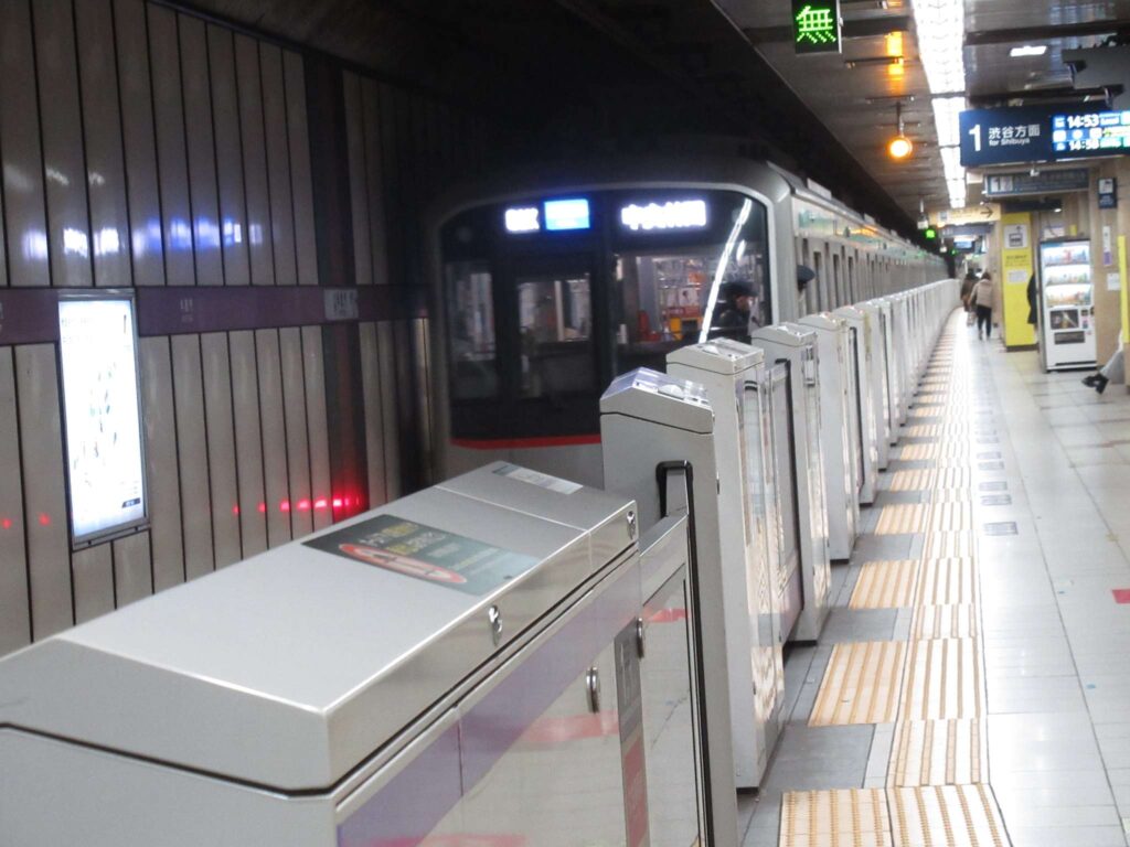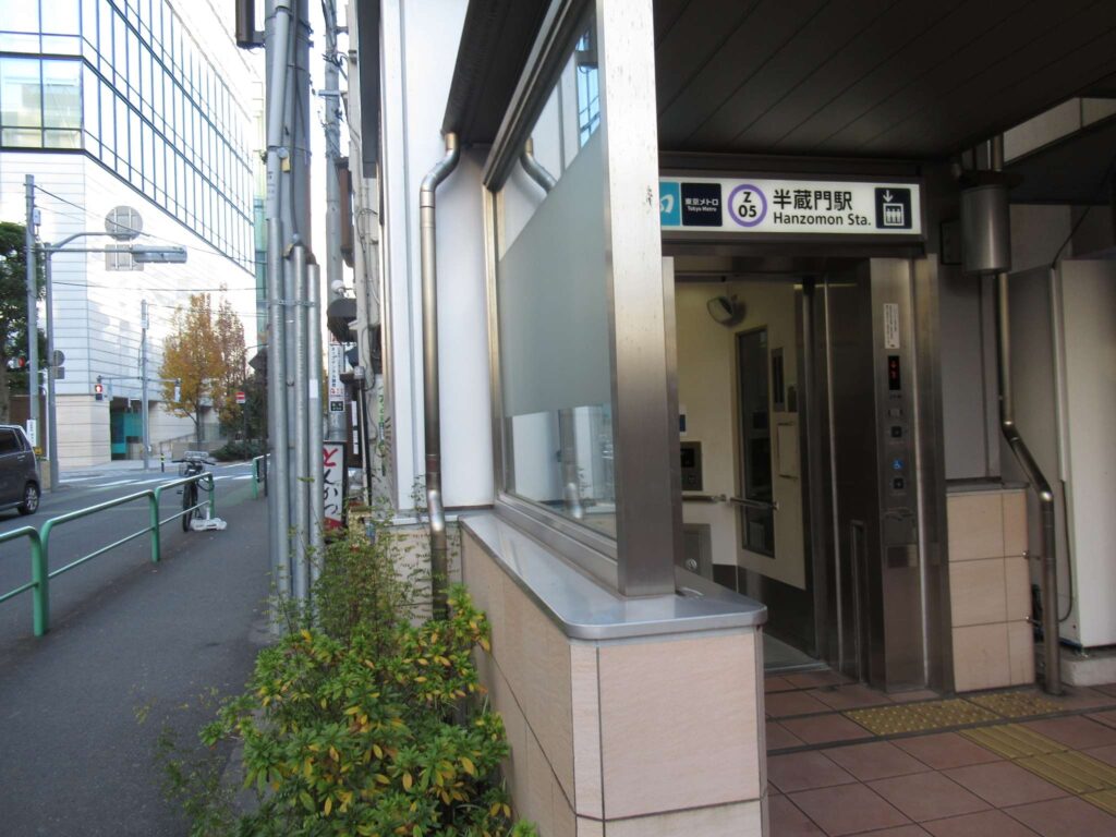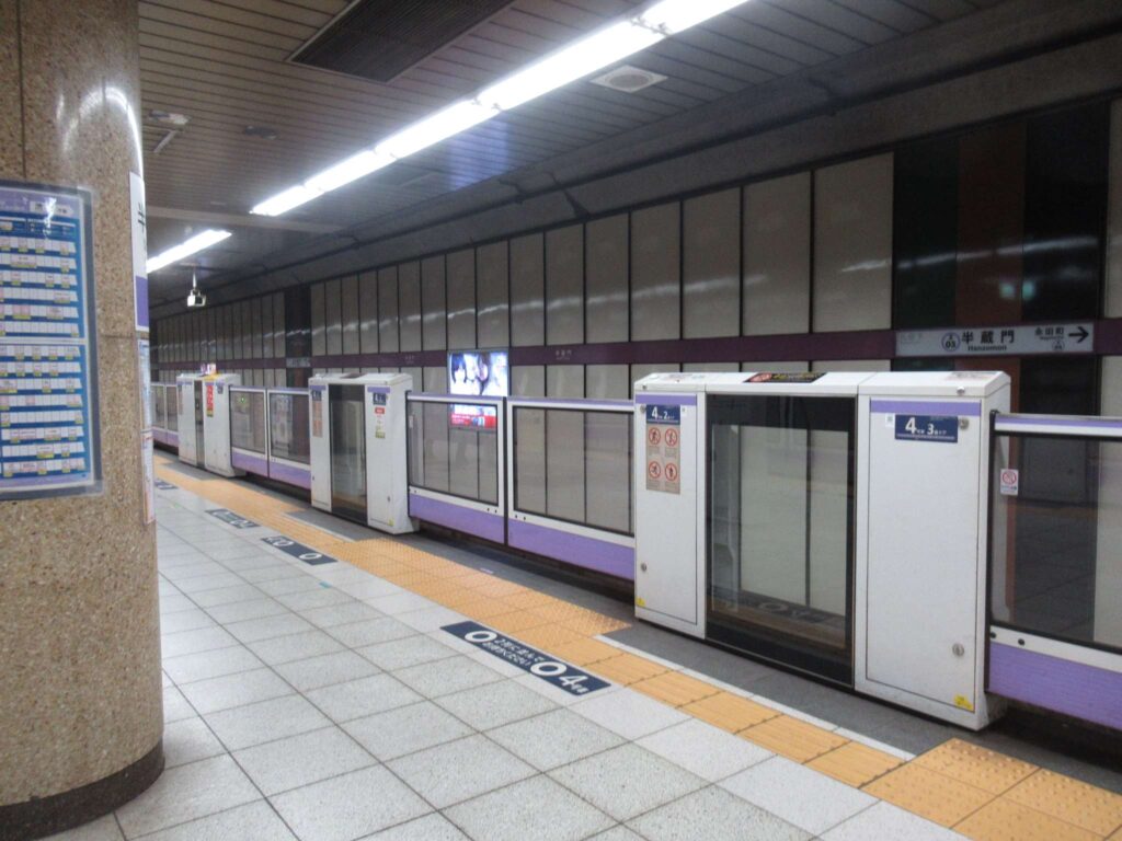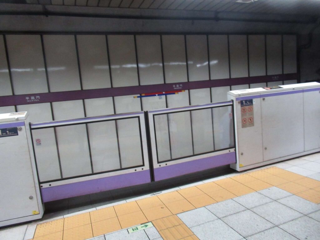 DoraNeko東京メトロこと東京地下鉄半蔵門線の半蔵門駅でございます。地下3階にホームがある島式1面2線の地下駅となっております。ホーム壁面の駅名標部分には国立劇場の緞帳をイメージしたカラーリングが施されております。半蔵門線内では唯一、他路線との連絡がない駅となっております。