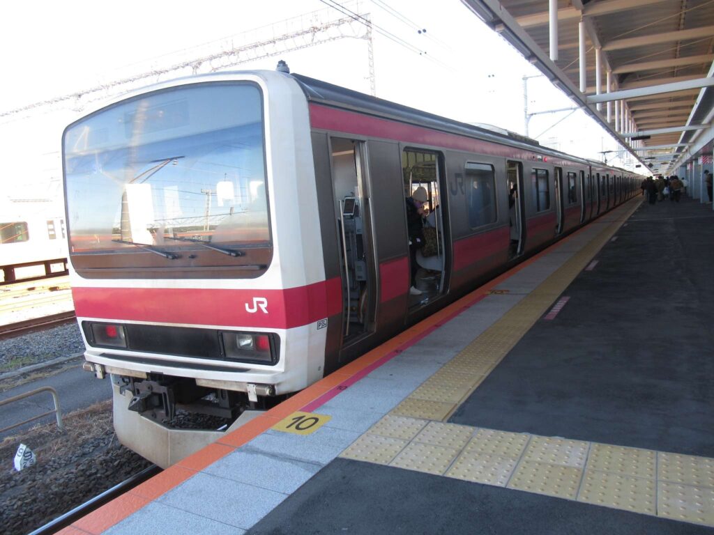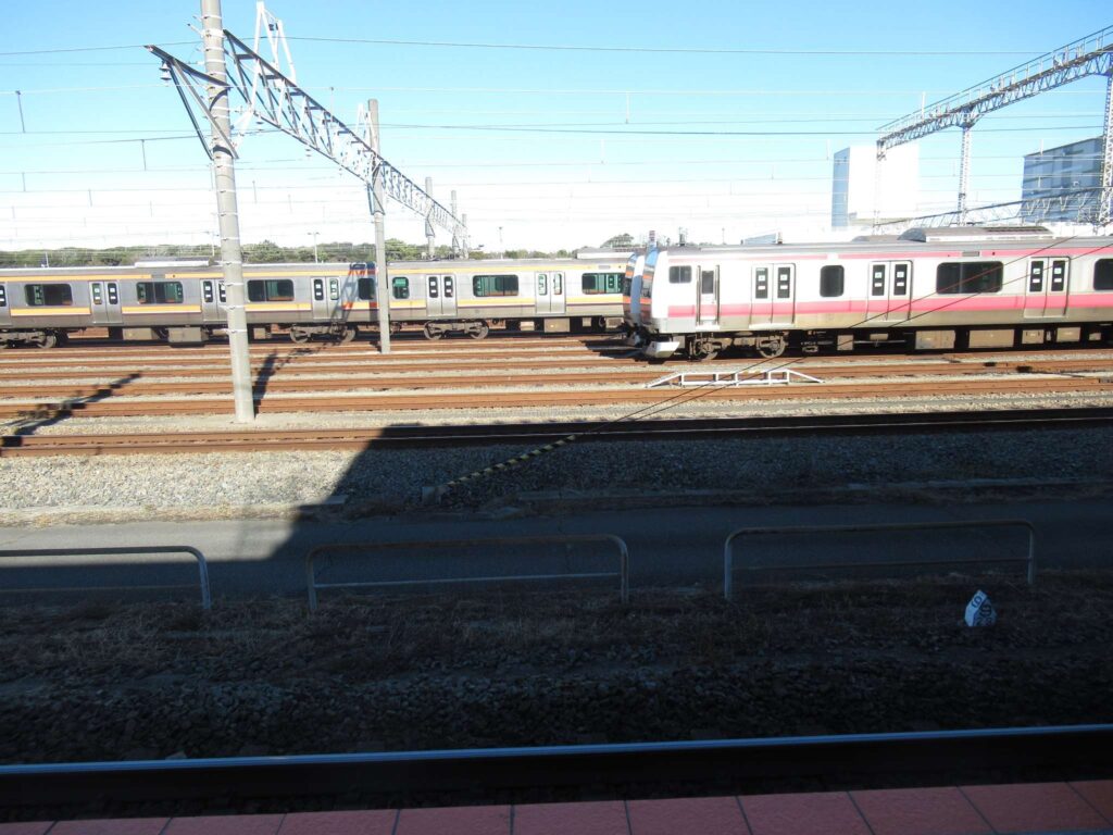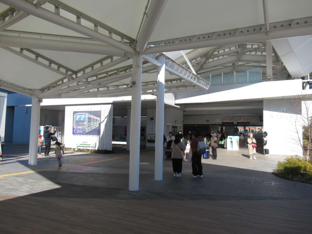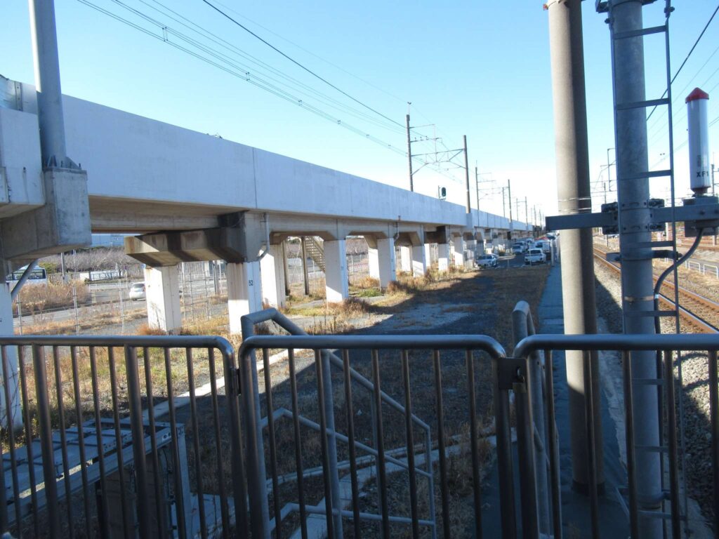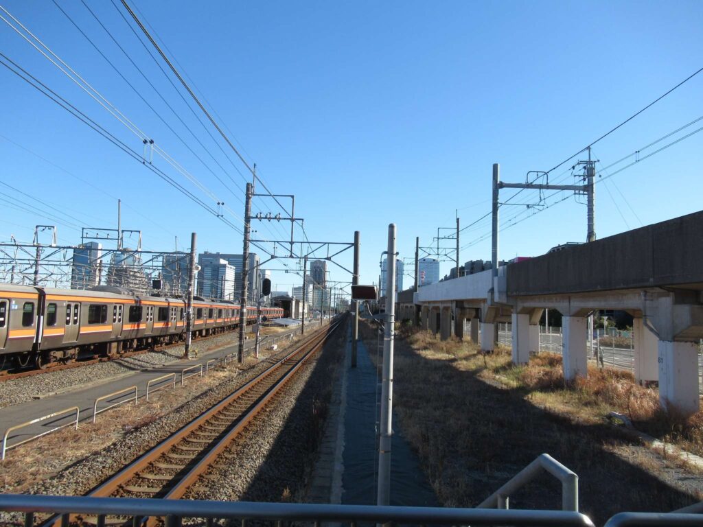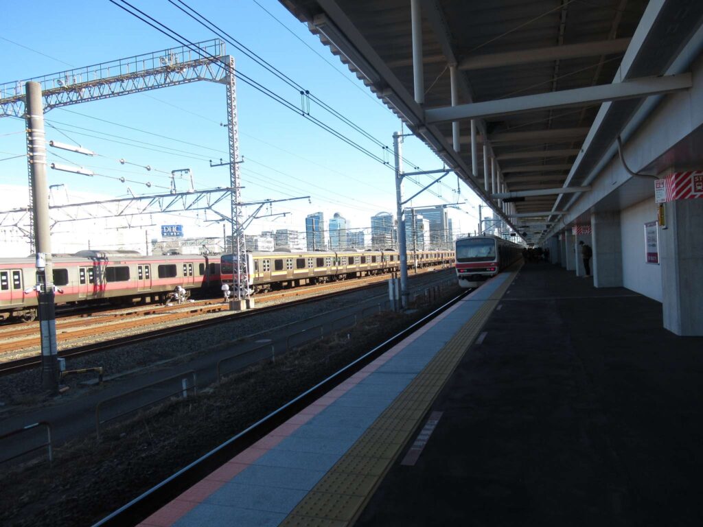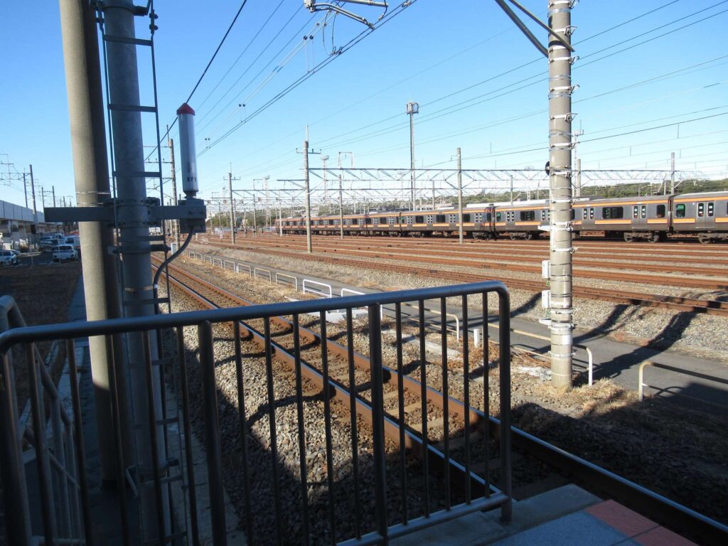 京葉線の幕張豊砂駅でございます。2023年(令和5年)3月に開業した請願駅で、京葉線で最も新しい駅でございます。下り線が地上部に単式1面1線のホーム、上り線が高架の単式1面1線のホーム、合わせて単式2面2線の構造でございます。かつてこの駅南側付近に貨物駅を開設する計画があったため、このような配線になっていたところに駅が設けられたという経緯でございます。北側には京葉車両センターがございます。駅舎は高架下に新設されております。イオンモール幕張新都心が目前にあるので、イオン新駅などと言われることがあるそうですが、実態は駅が出来ることになったので、イオンが進出したのが正確なようです、知らんけど(←知らんのかいw)。