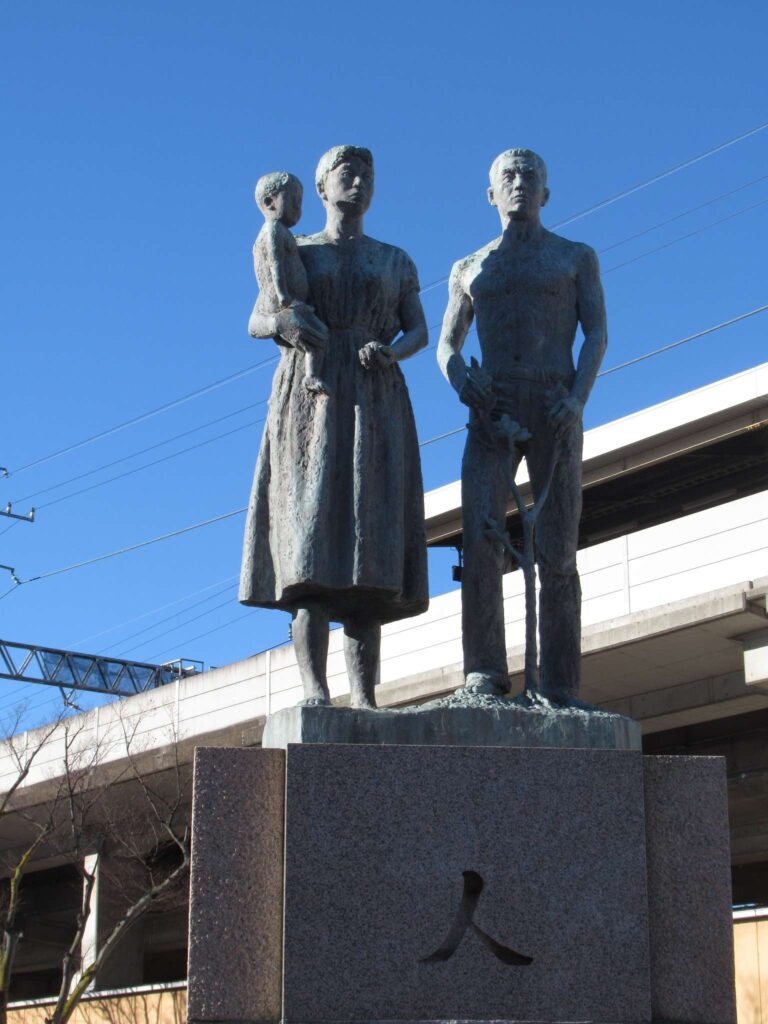 京葉線の稲毛海岸駅南口広場に建つ像、「人」でごさいます。大須賀力さんの作品でございますですね。この方の作品は市川市内に多く、その他の千葉県内でもよく見かけます。