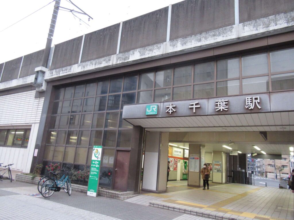 外房線の本千葉駅でございます。高架の複線電化区間にある島式1面2線の高架駅となっております。すぐ横を京成電鉄千原線が並走しておりますが、そちらには駅はございません。千葉大学亥鼻キャンパス、千葉県立千葉中学・高等学校などの最寄り駅となっております。