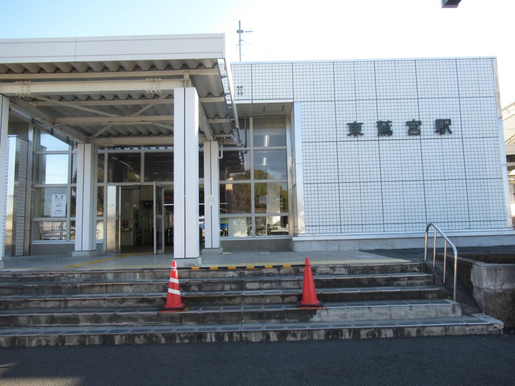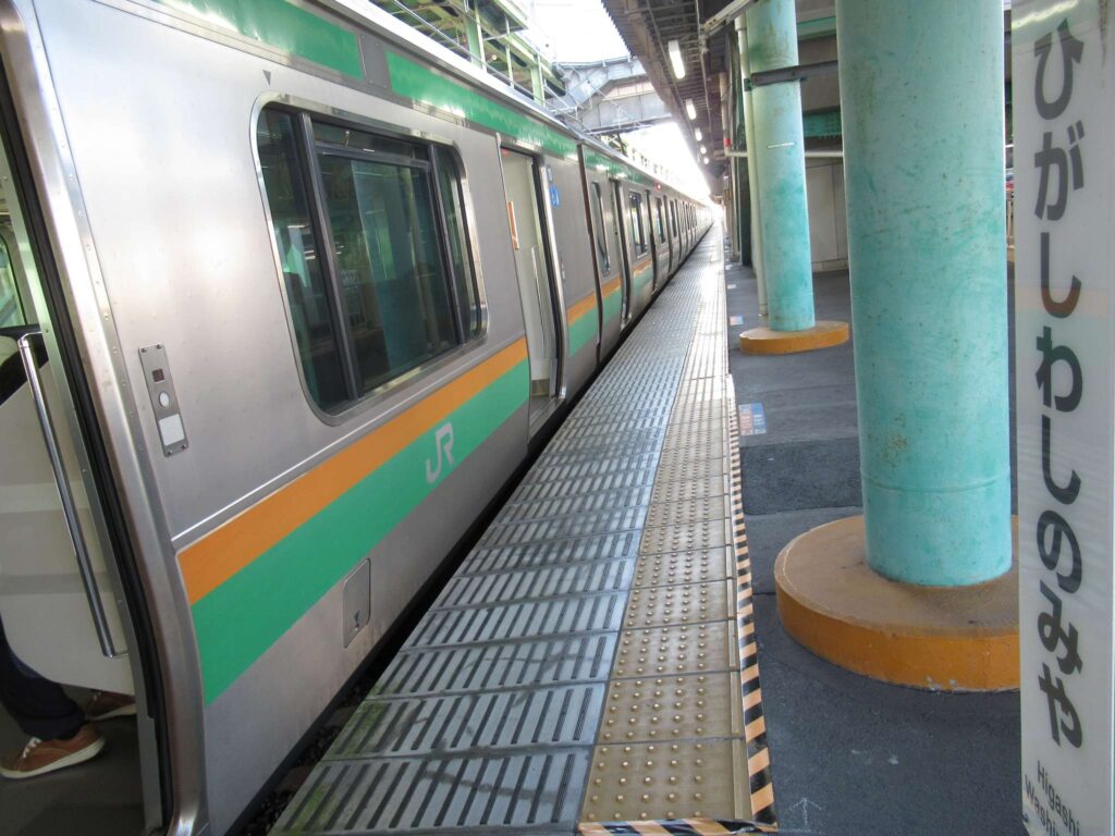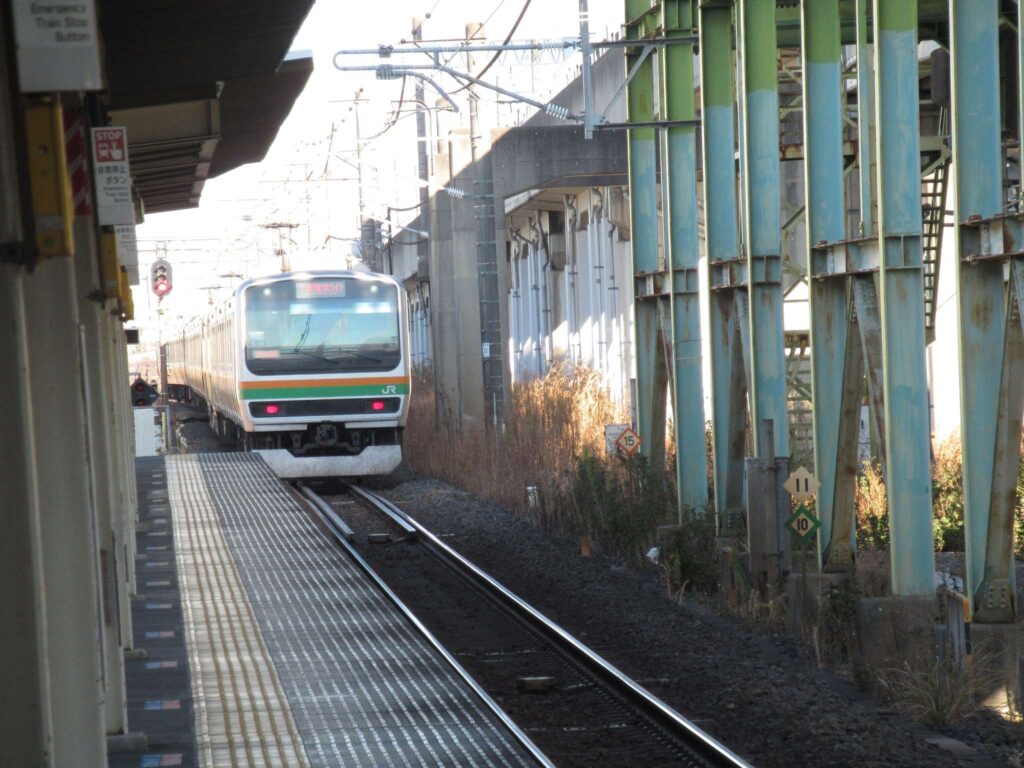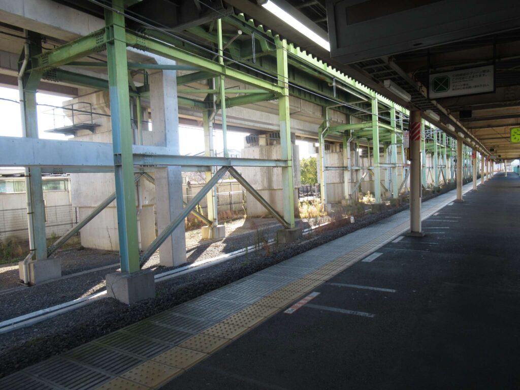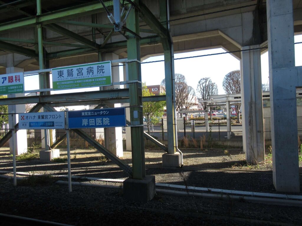 DoraNeko東北本線の東鷲宮駅でございます。宇都宮線の愛称区間に含まれております。電化複線区間にある単式2面2線のホームがある駅ですが、下り線が地上にある単式1面1線で、上り線が高架部にある単式1面1線という特殊構造の駅となっております。駅舎改札は下り線地上ホームに直結、高架にある上り線へは階段・エスカレーター・エレベーターで連絡しております。この様な特殊な構造になったのは、貨物駅と保線基地への線路が下り線から分岐しており、上り線に支障しないように上り線のみ高架化したためなのだそうでございます。
