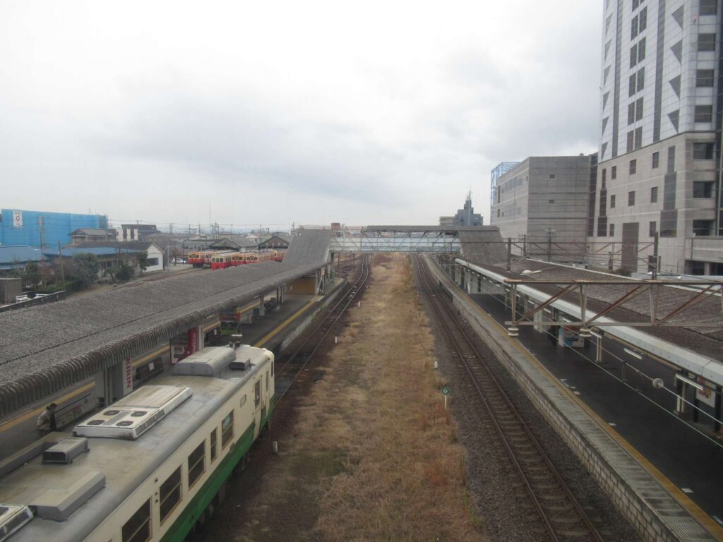 内房線と小湊鉄道の五井駅でございます。内房線は蘇我駅から君津駅まで複線電化、小湊鉄道は全線単線非電化の路線でございます。双方ともに島式1面2線の地上駅で、東西自由通路の中に改札がある橋上駅となっております。改札はR東日本と小湊鉄道の共有になっております。千葉県立京葉高等学校などの最寄り駅となっており、他に駅から距離が離れている市原中央高等学校、東海大学付属市原望洋高等学校へのスクールバスが発着しており、生徒の利用も多い駅でございます。
