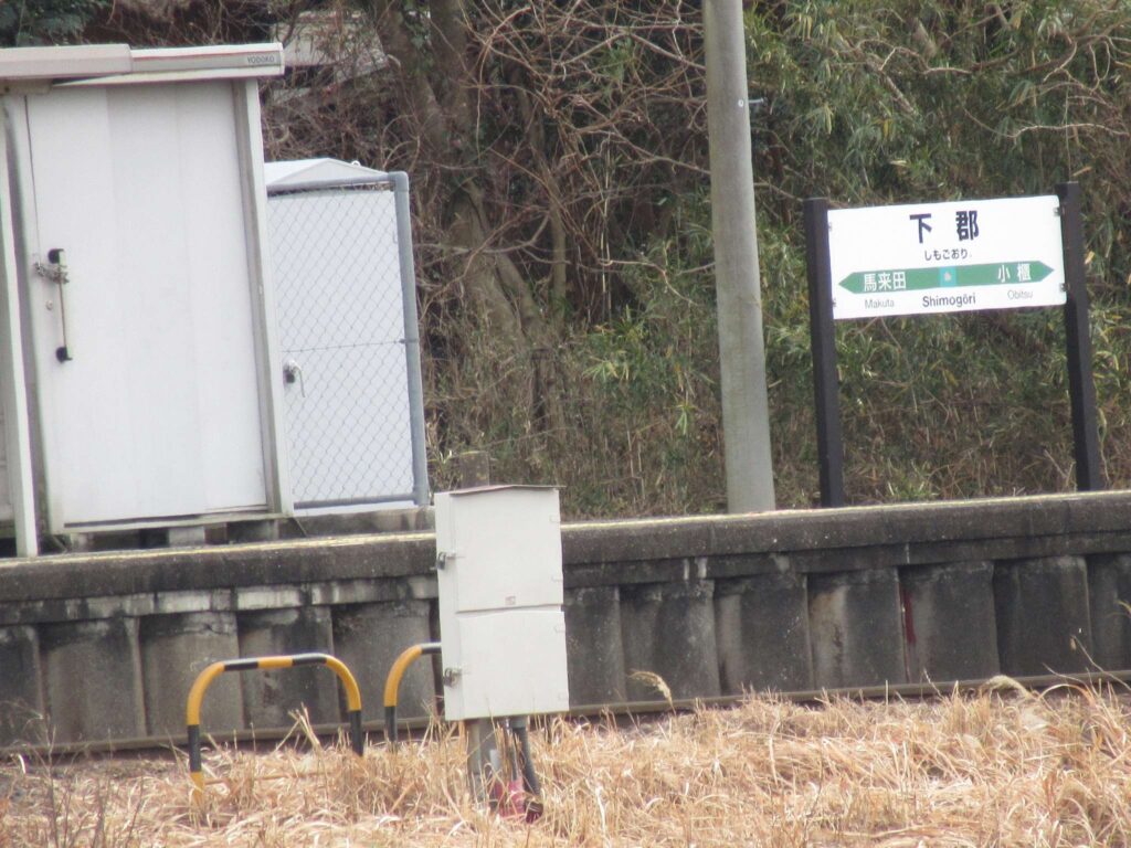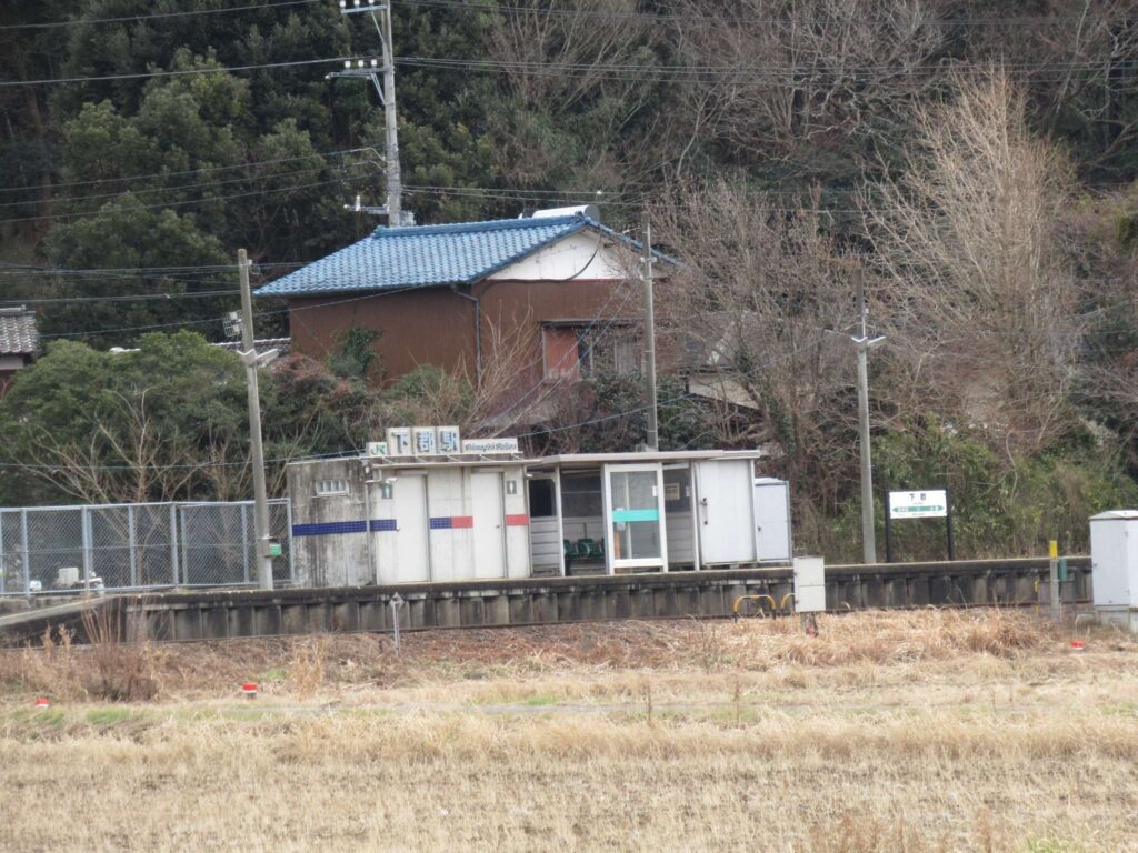 全線単線非電化の路線、久留里線の下郡駅でございます。単式1面1線の棒線駅となっております。駅舎のない無人駅で、ホーム上に待合所が設置されております。ホーム端のスロープから直接出入りする構造でございます。ワタクシ、この駅の出入口が何処だか分からず、迷いましたですよ、そこの奥さん(←何処の奥さん?)。