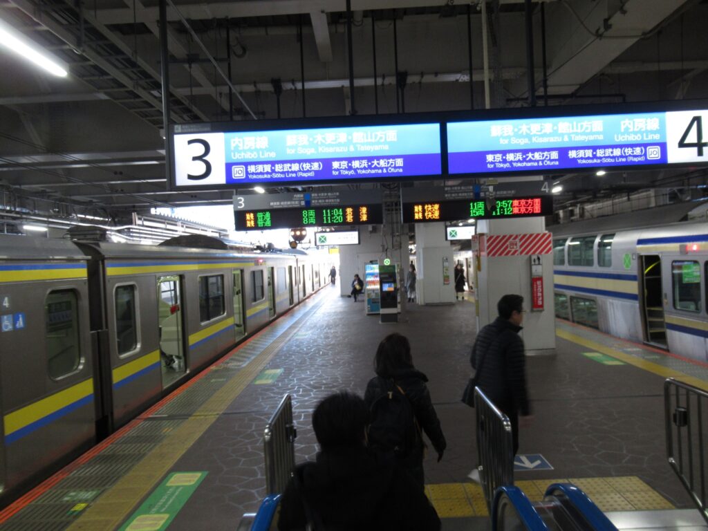 千葉駅でございます。線路名称上は総武本線と外房線の2路線の駅でございますが、乗り入れる運行系統は多岐に亘ります。岡山へ戻るために総武快速線に乗車して東京駅を目指します。一旦戻るんですが次週に神奈川県、その二週後にまた千葉に来るっていう予定なんでございます。今回はお試しでグリーン車に乗りますです。