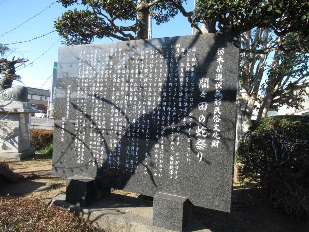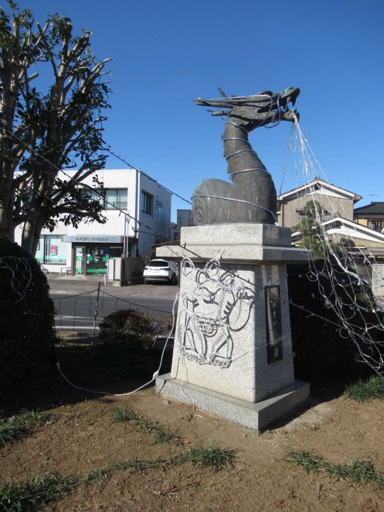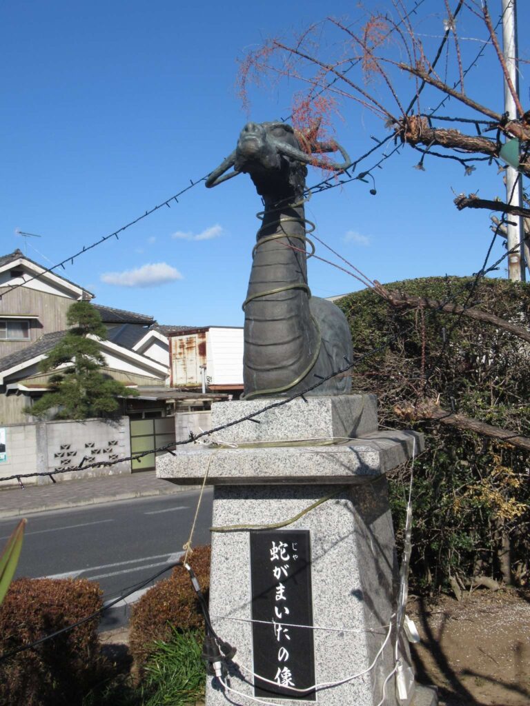 間々田駅前にある「蛇がまいたの像」でございます。じゃがまいたとは別名蛇まつりと言われる龍神信仰を伝える奇祭なのだそうです。国の重要無形民俗文化財に指定されているそうですよ、そこの奥さん(←何処の奥さん?)。