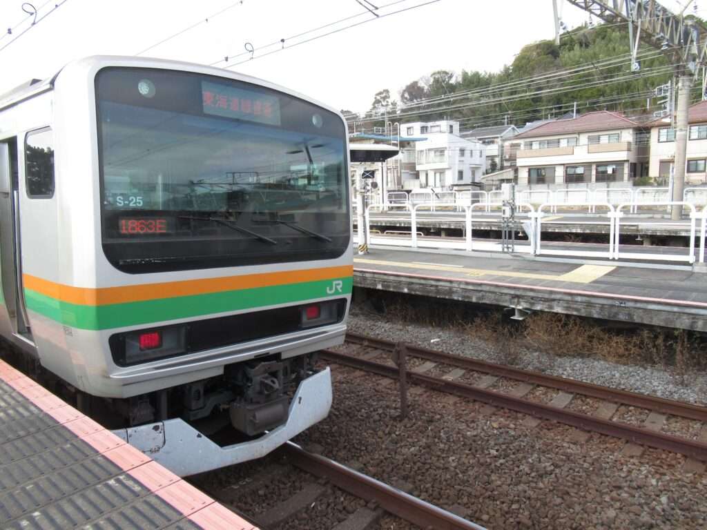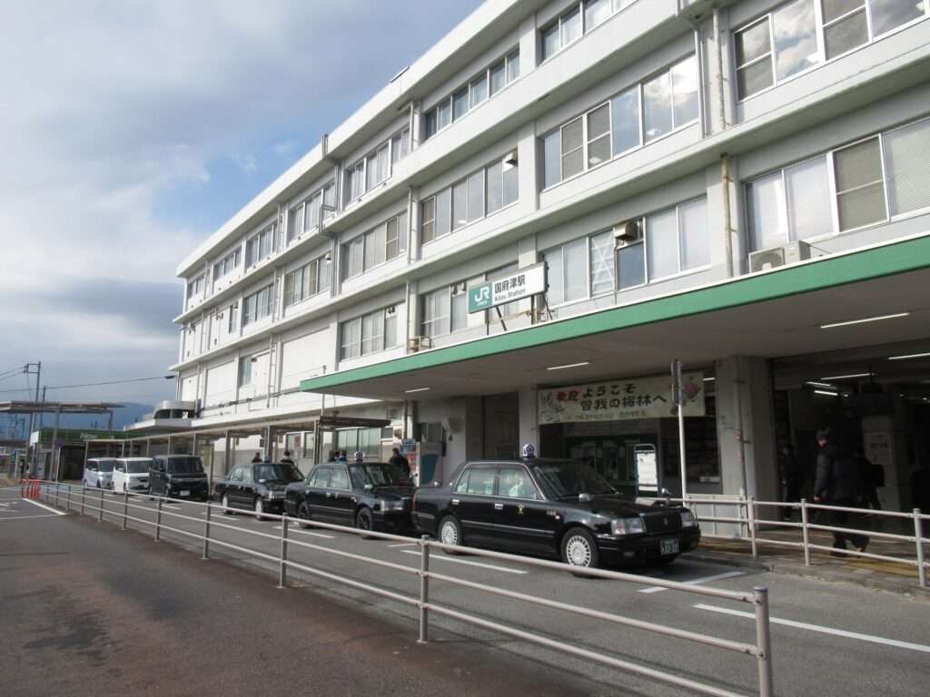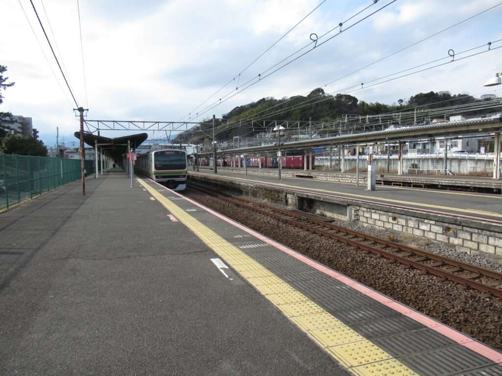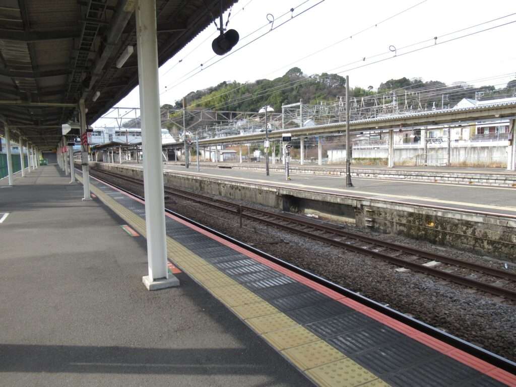 東海道本線と御殿場線の国府津駅でございます。単式1面1線と島式2面4線、合計3面5線の地上駅となっております。単式ホーム側にコンクリート造り4階建て駅舎があり、島式ホームへは地下道並びに跨線橋で連絡しております。御殿場線は単線ですが途中まで国府津車両センターへの出入庫線が並走しております。