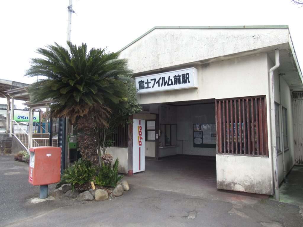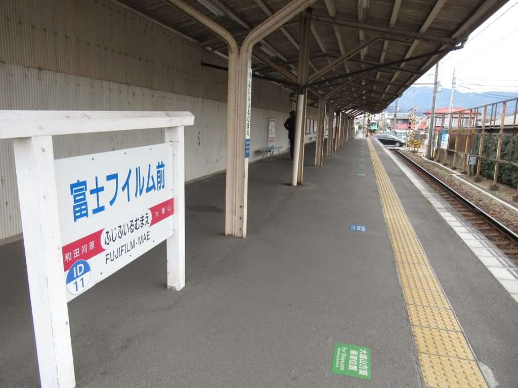 全線単線電化の路線、伊豆箱根鉄道大雄山線の富士フイルム前駅でございます。単式1面1線の棒線駅、地上駅で待合室のみの簡易な駅舎のある無人駅となっております。駅舎に隣接して時計塔がある洋風デザインの建物がありますが、こちらは公衆トイレでございます。