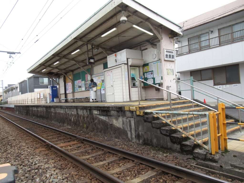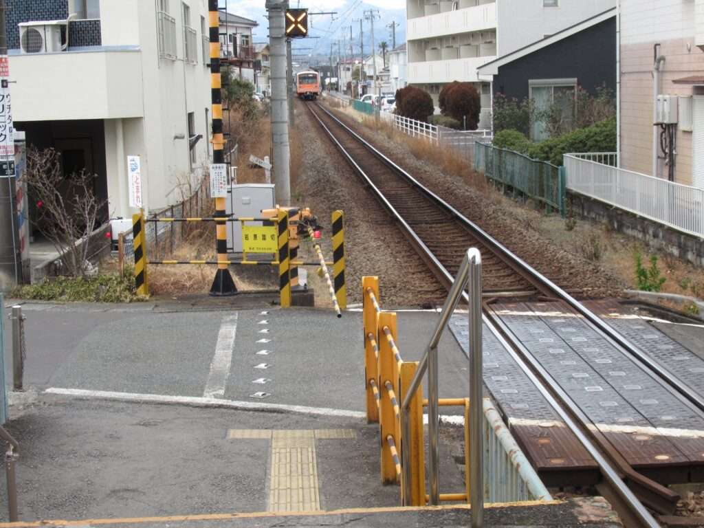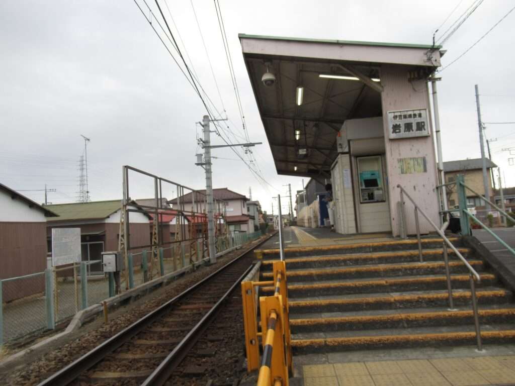 全線単線電化の路線、伊豆箱根鉄道大雄山線の岩原駅でございます。地上駅で、単式1面1線の棒線駅となっております。駅舎のない無人駅で、公道踏切脇のホーム端の階段から直接出入りするようになっております。