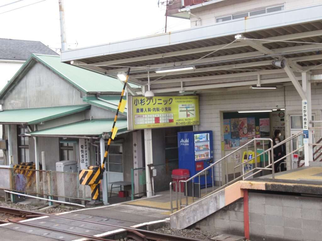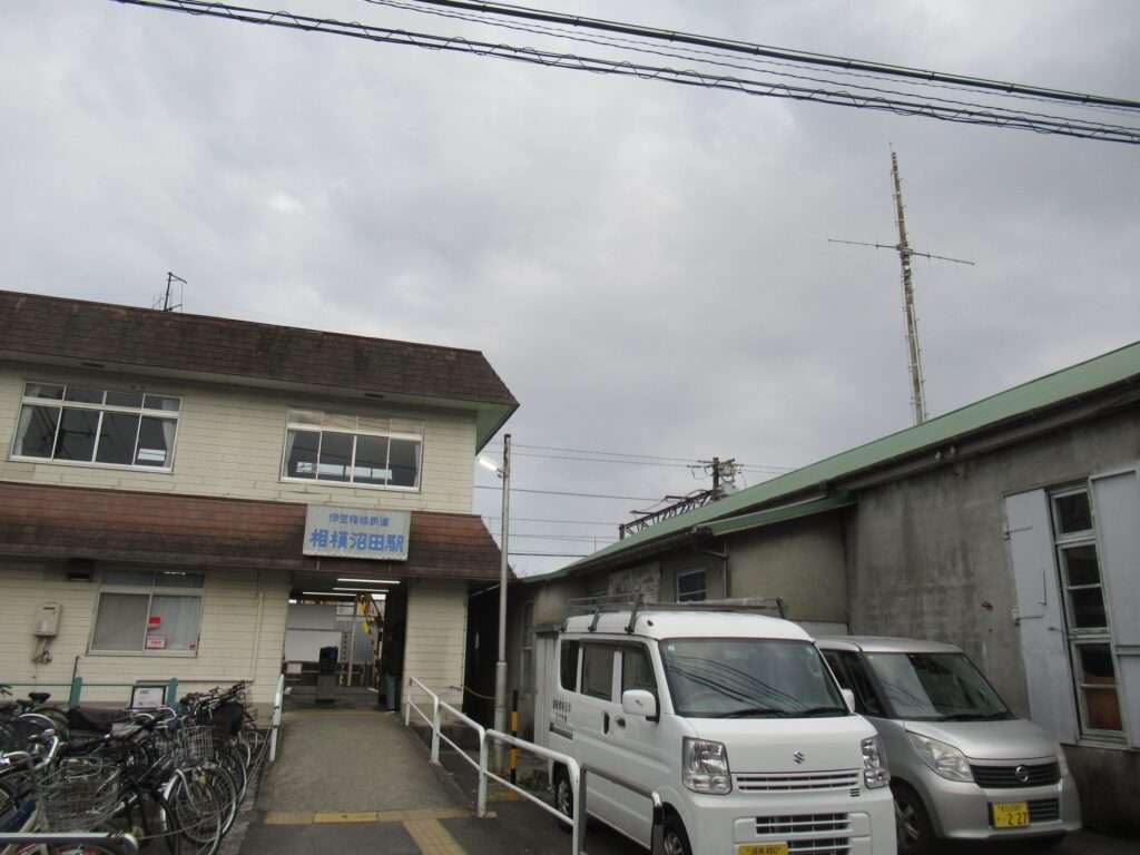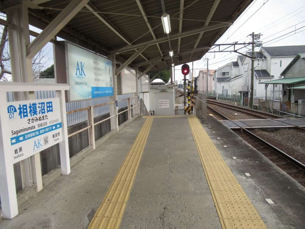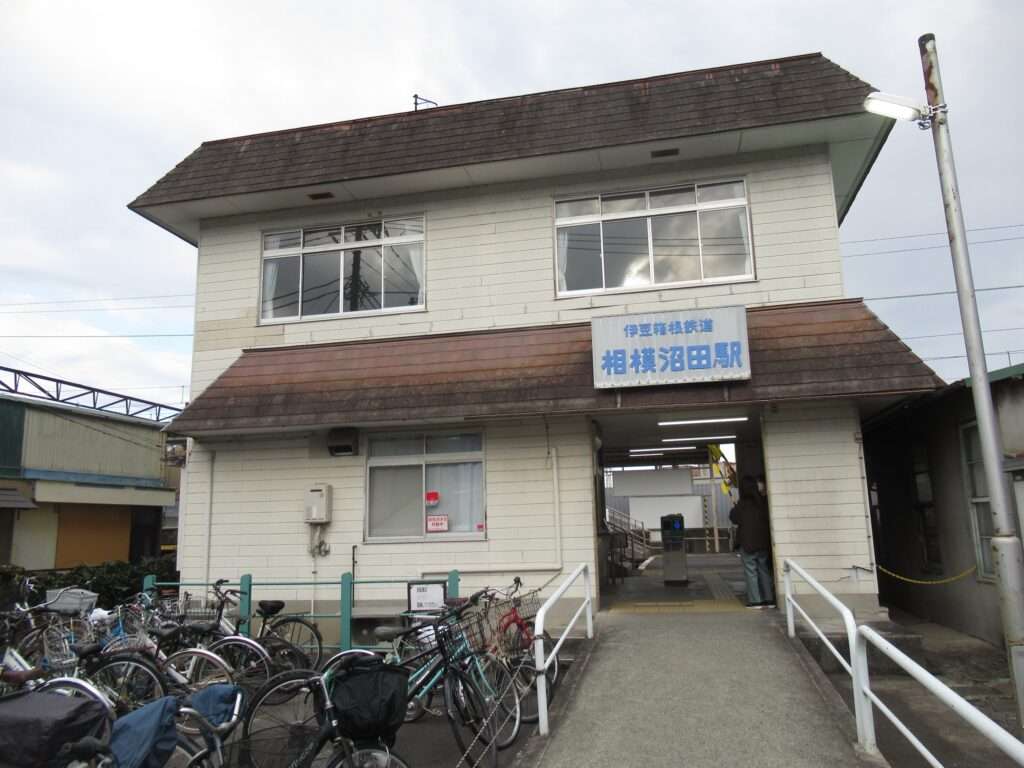 全線単線電化の路線、伊豆箱根鉄道大雄山線の相模沼田駅でございます。列車交換可能な相対式2面2線の地上駅で、二階建て駅舎がある有人駅となっております。駅舎と反対側ホームへは遮断機付きの構内踏切で連絡しております。列車交換が頻繁に行われております。