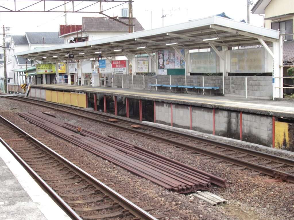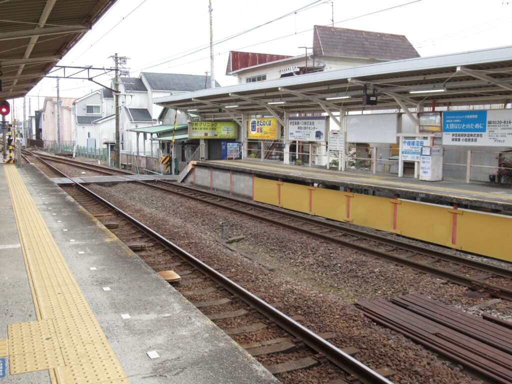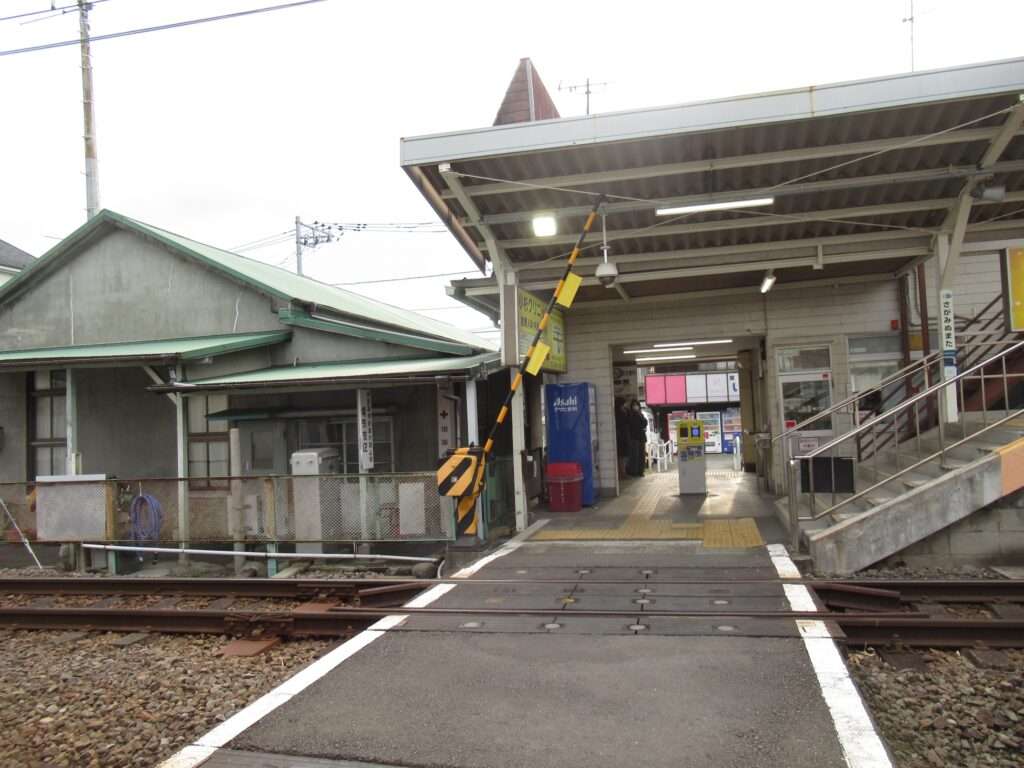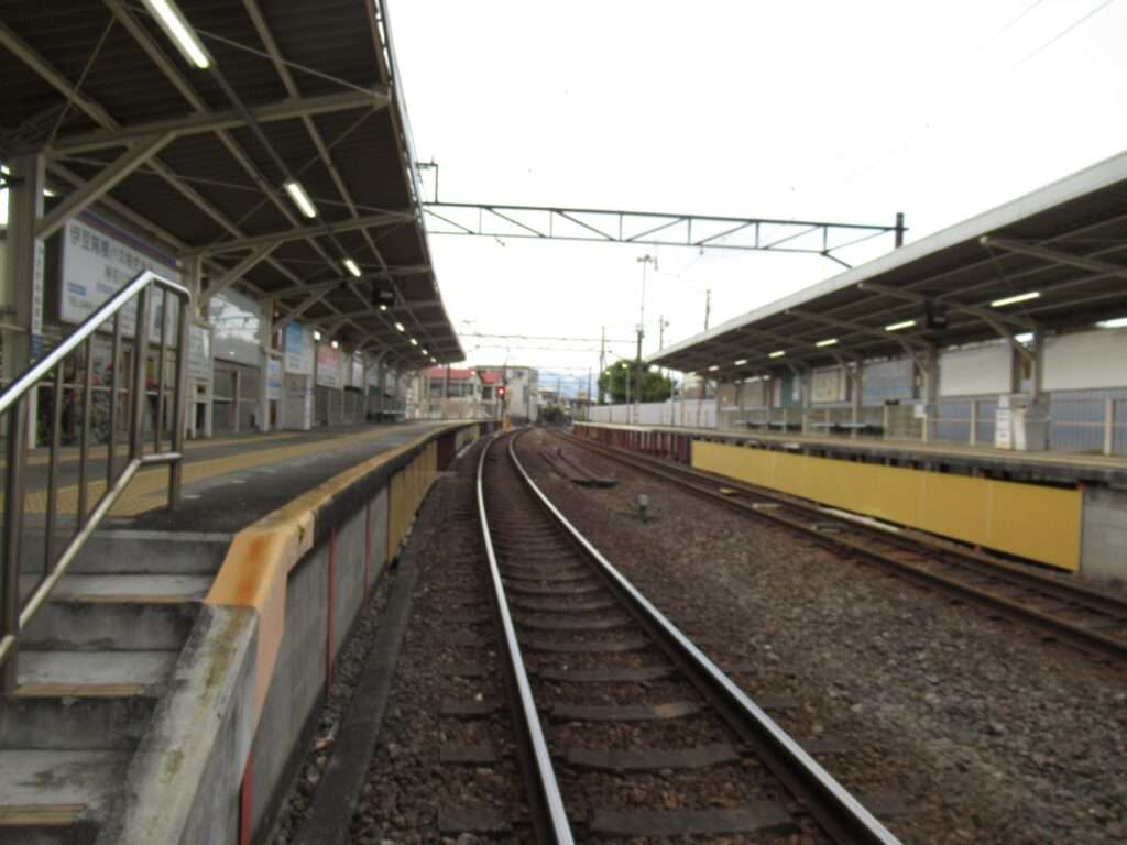 全線単線電化の路線、伊豆箱根鉄道大雄山線の相模沼田駅でございます。列車交換可能な相対式2面2線の地上駅で、二階建て駅舎がある有人駅となっております。駅舎と反対側ホームへは遮断機付きの構内踏切で連絡しております。列車交換が頻繁に行われております。