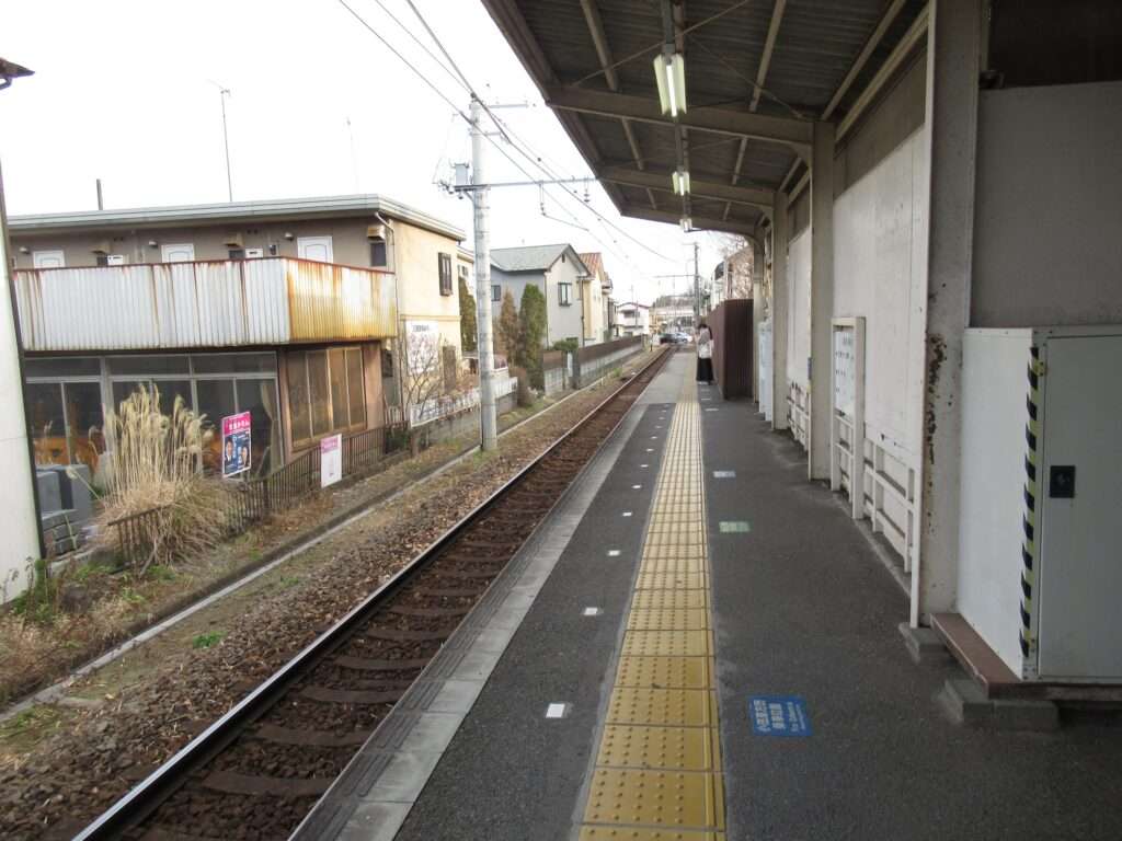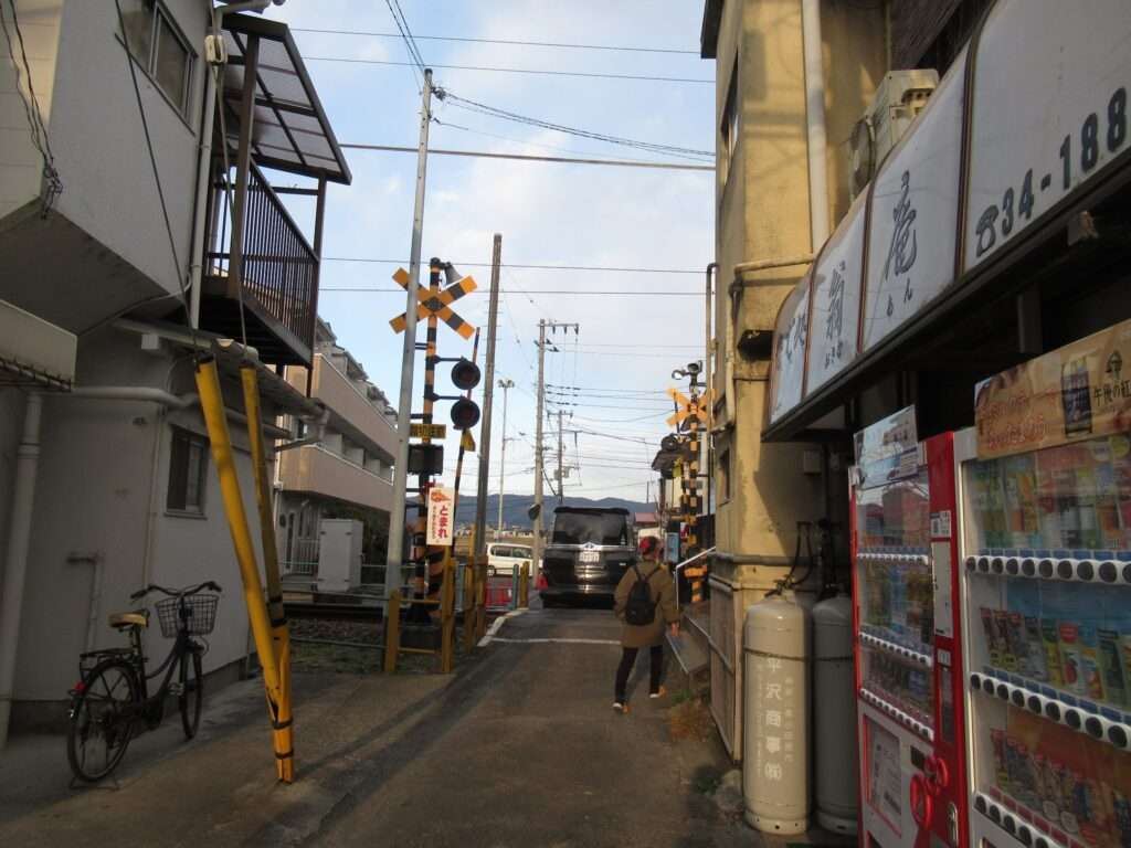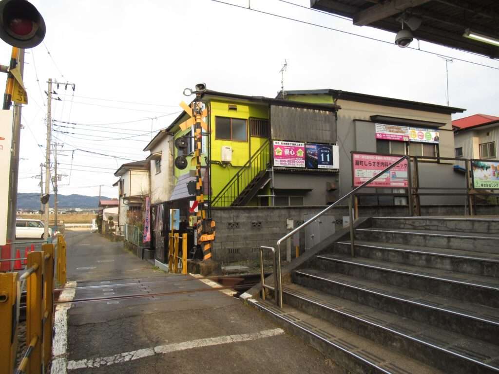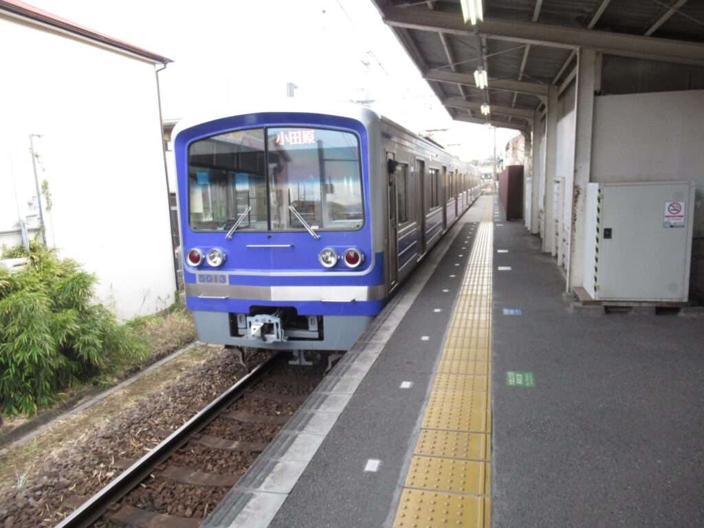 全線単線電化の路線、伊豆箱根鉄道大雄山線の穴部駅でございます。地上駅で、単式1面1線の棒線駅となっております。ホームの上に簡易な二階建て駅舎のある無人駅となっております。幅が狭い公道踏切に接しているホームの端の階段から直接出入りするようになっておりますが、この公道踏切はクルマが頻繁に通行しますし、とても狭いのでヒヤヒヤしますな。