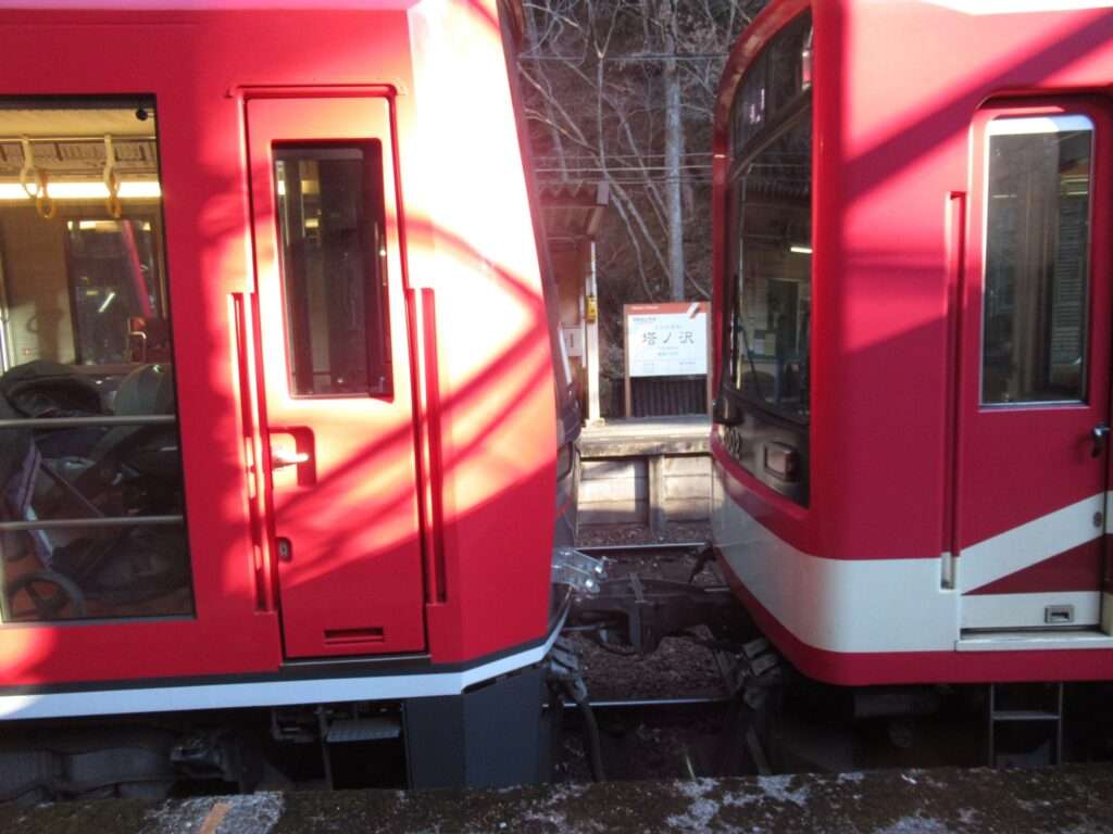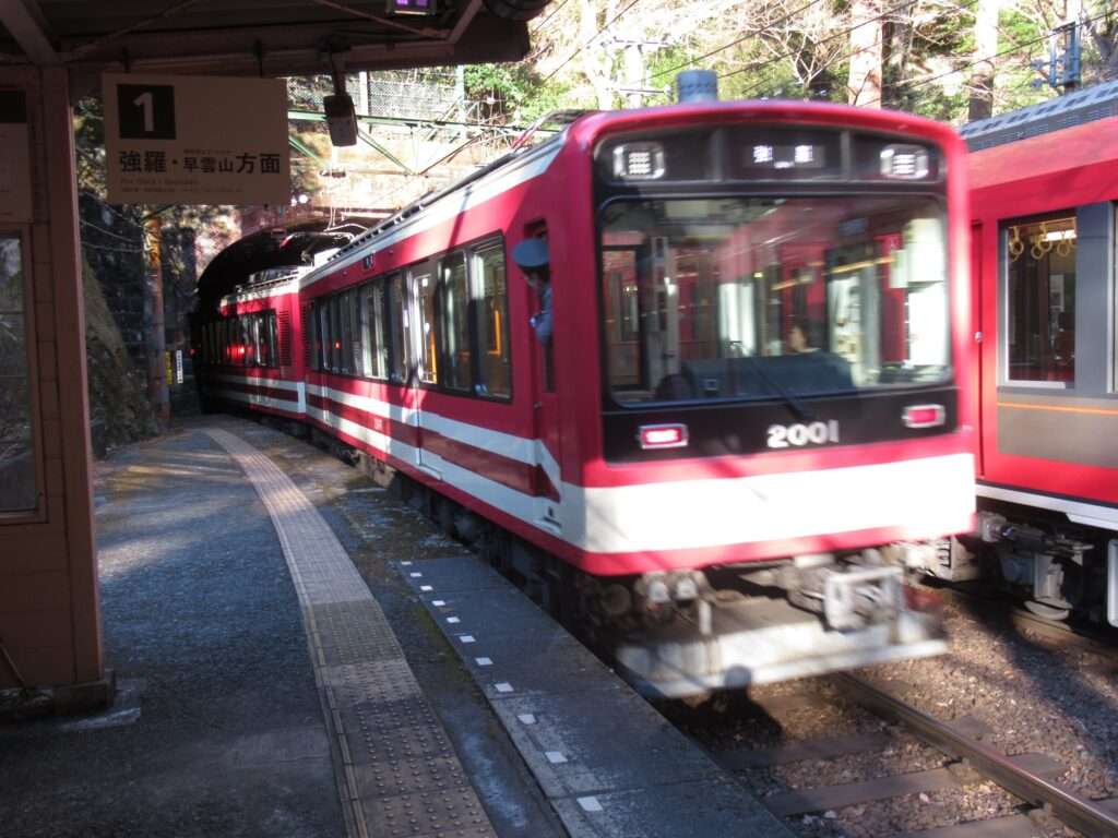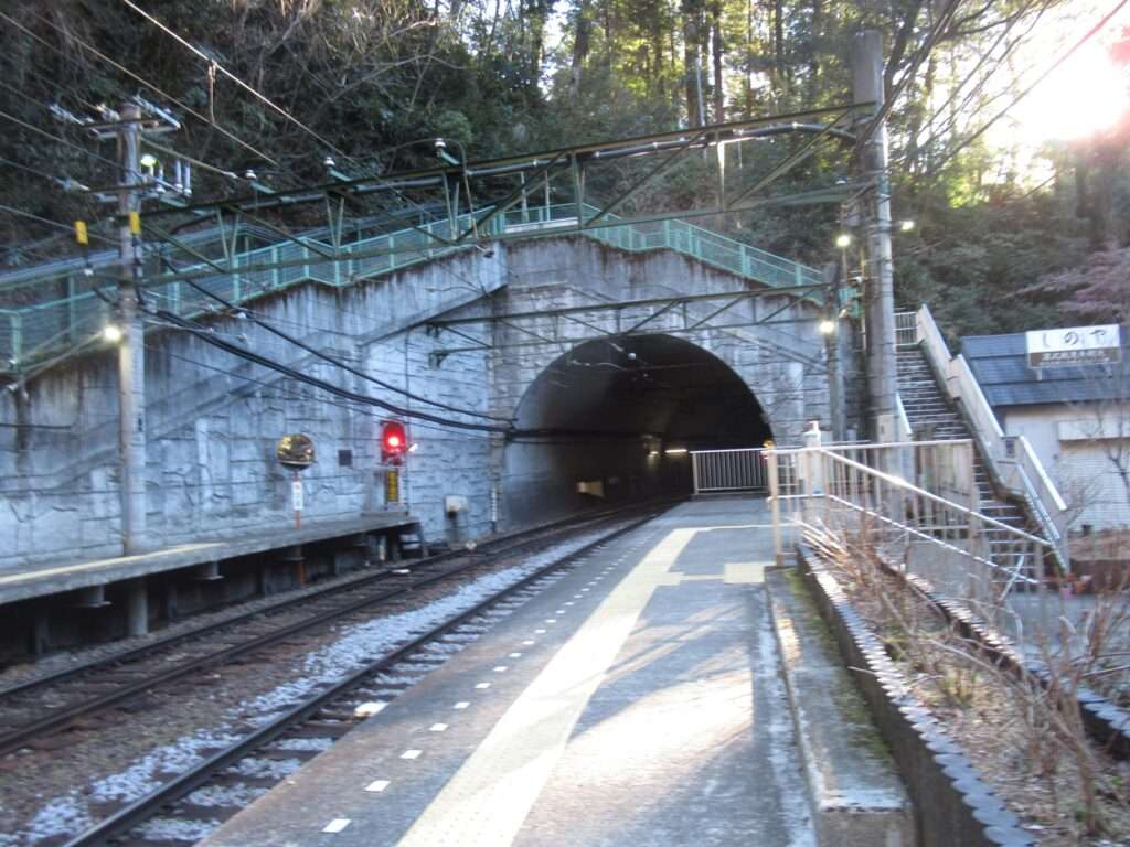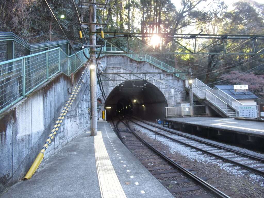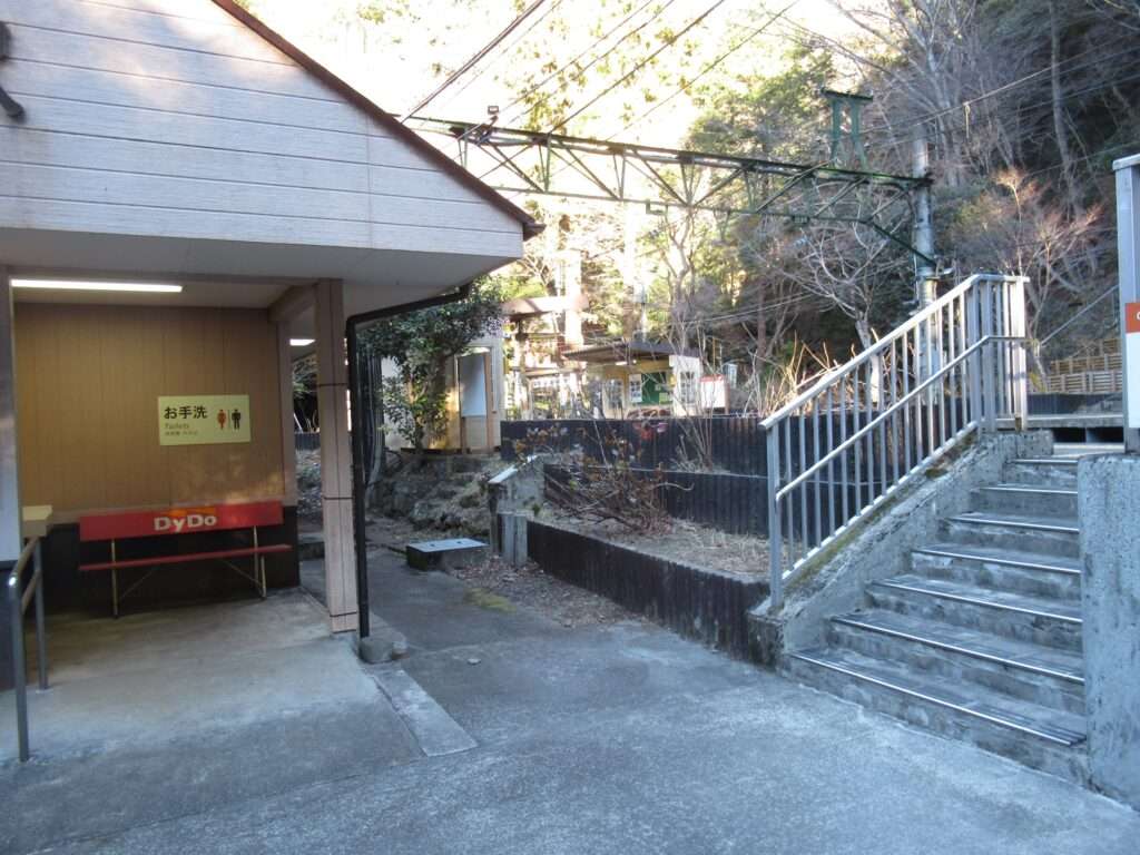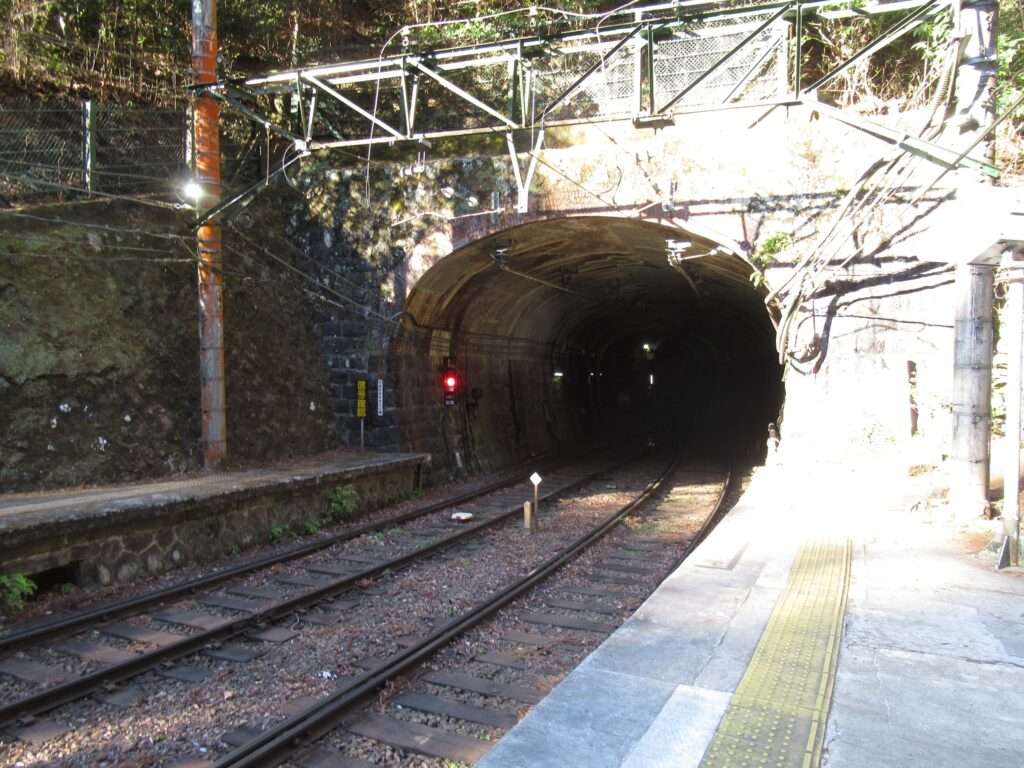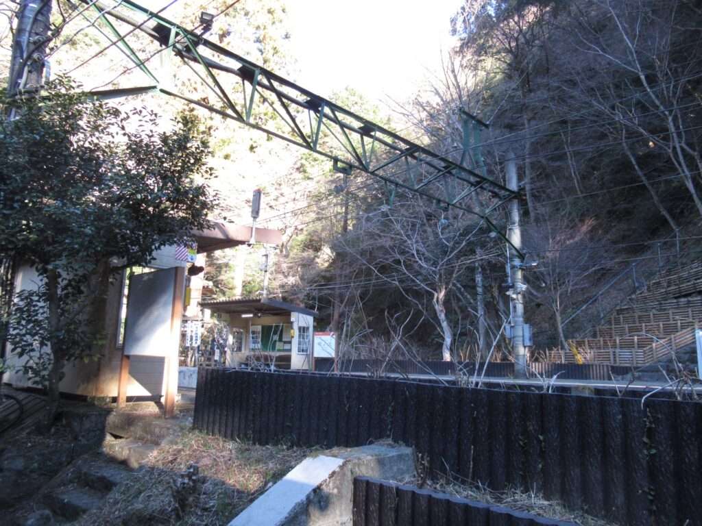 箱根登山鉄道線を引き継いだ箱根登山電車こと小田急箱根鉄道線の塔ノ沢駅でございます。単線電化区間にある列車交換可能な相対式2面2線の地上駅で、ホームはトンネルに挟まれた場所にございます。待合室とトイレのみの駅舎がある無人駅で、反対側の箱根湯本方面行ホームへはトンネルの入口上に設けられた階段通路での連絡となっております。こちらのホーム脇に深澤銭洗弁財天がございます。この駅は山の中に位置していて、国道1号の玉ノ緒橋付近からクルマが通行できない狭い坂道を登ってくるしか到達手段がないため、ある意味「秘境駅」に近しい雰囲気なのでございます。