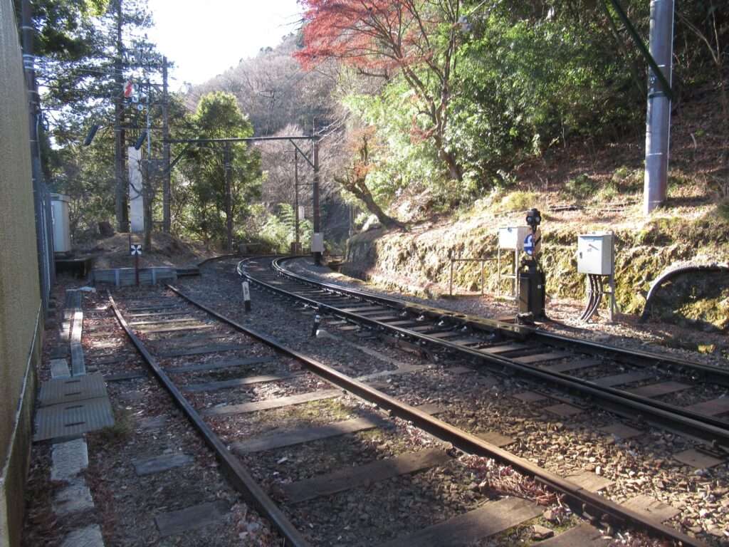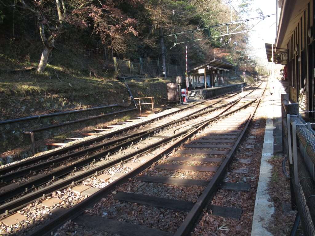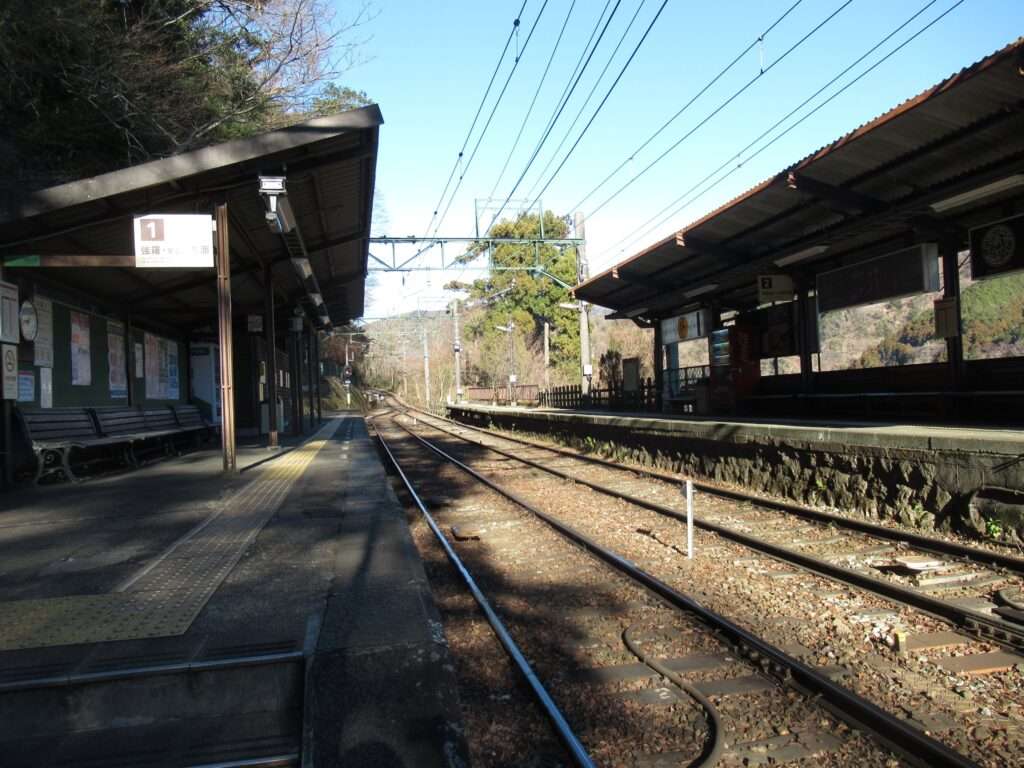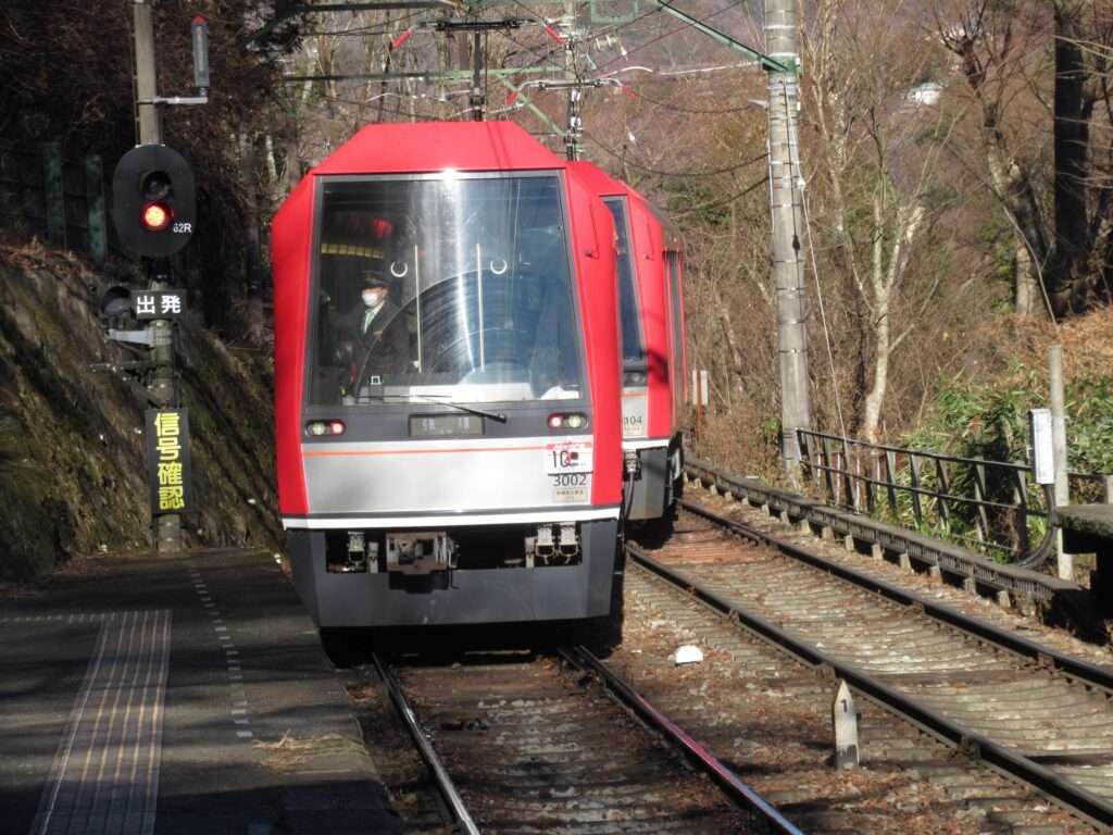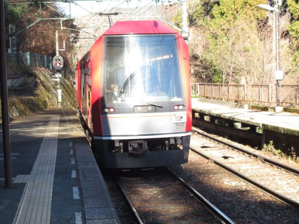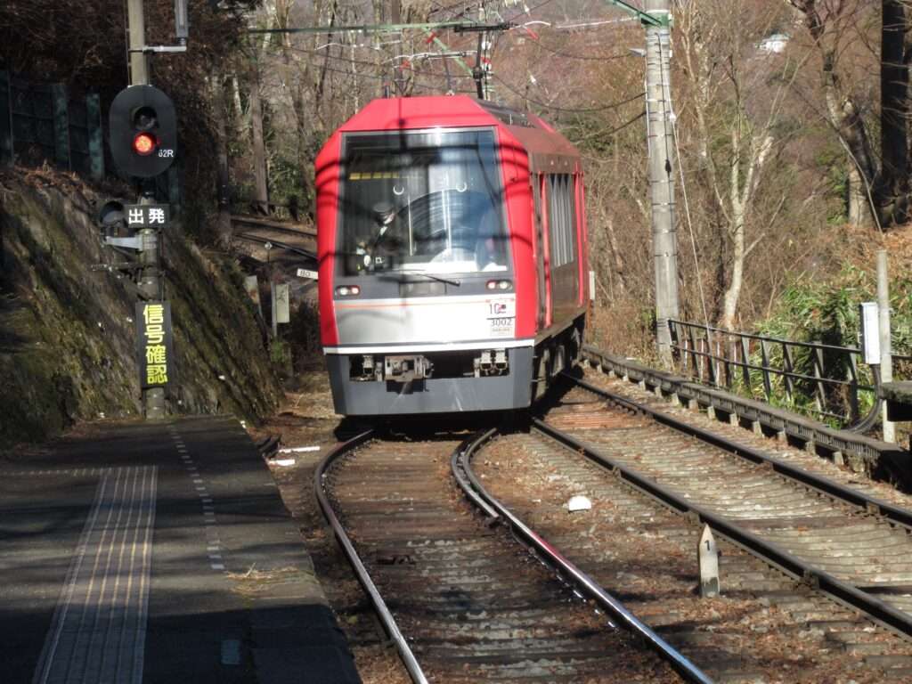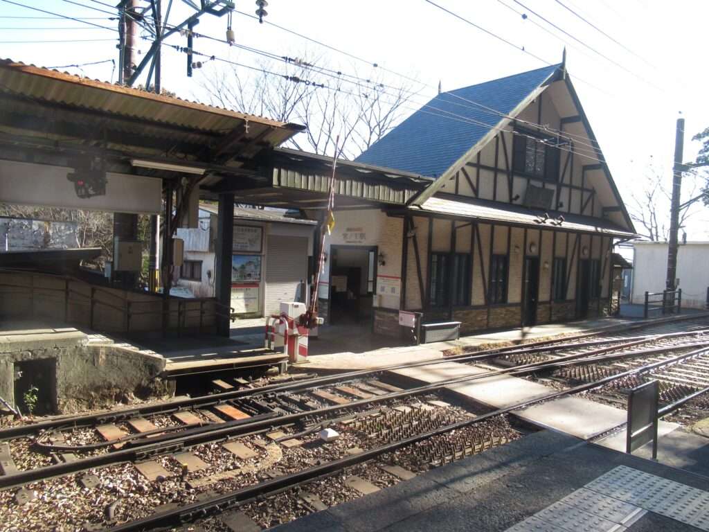 箱根登山鉄道線を引き継いだ箱根登山電車こと小田急箱根鉄道線の宮ノ下駅でございます。単線電化区間にある列車交換可能な相対式2面2線の地上駅となっております。三角屋根が印象的な山小屋風デザインの駅舎がある無人駅で、反対側ホームとは遮断機付きの構内踏切で連絡しております。