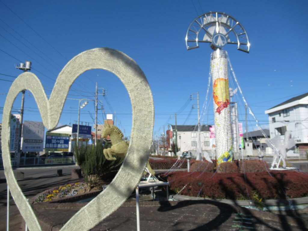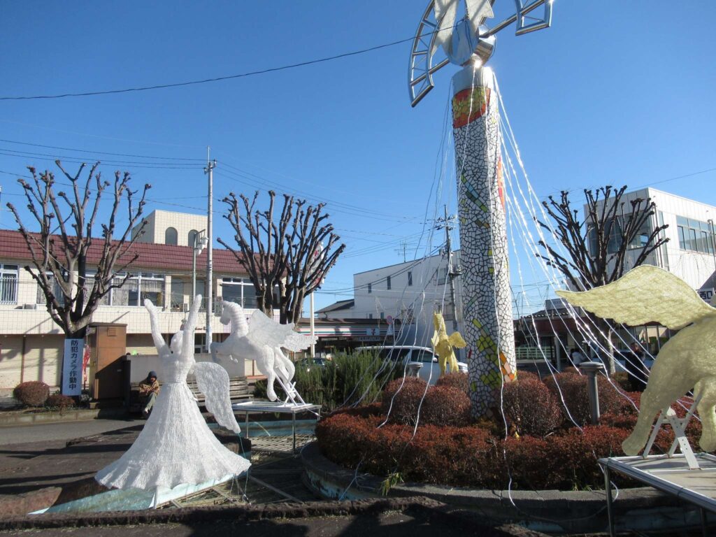 野木駅前西口ロータリーでございます。ペガサスや妖精さんが居りますな。野木町で毎冬に行われているTOWN-NOGIイルミネーションってイベントなんですな。夜はさぞかし綺麗なんでしょうけどね、残念ながら昼間ですのでね。