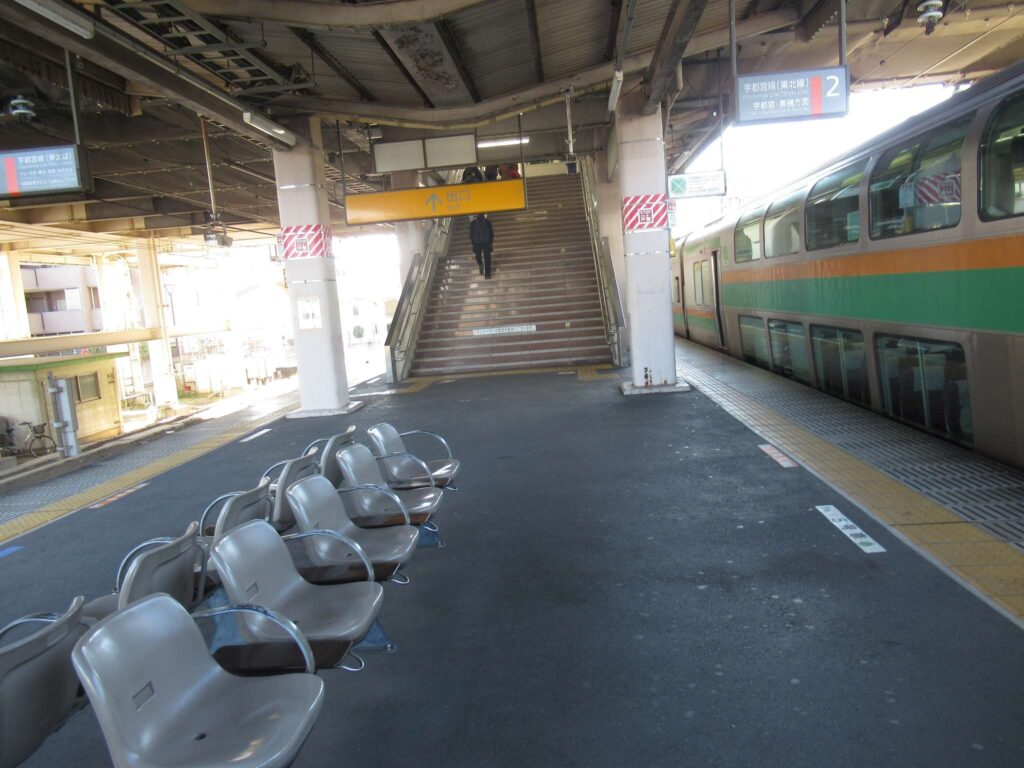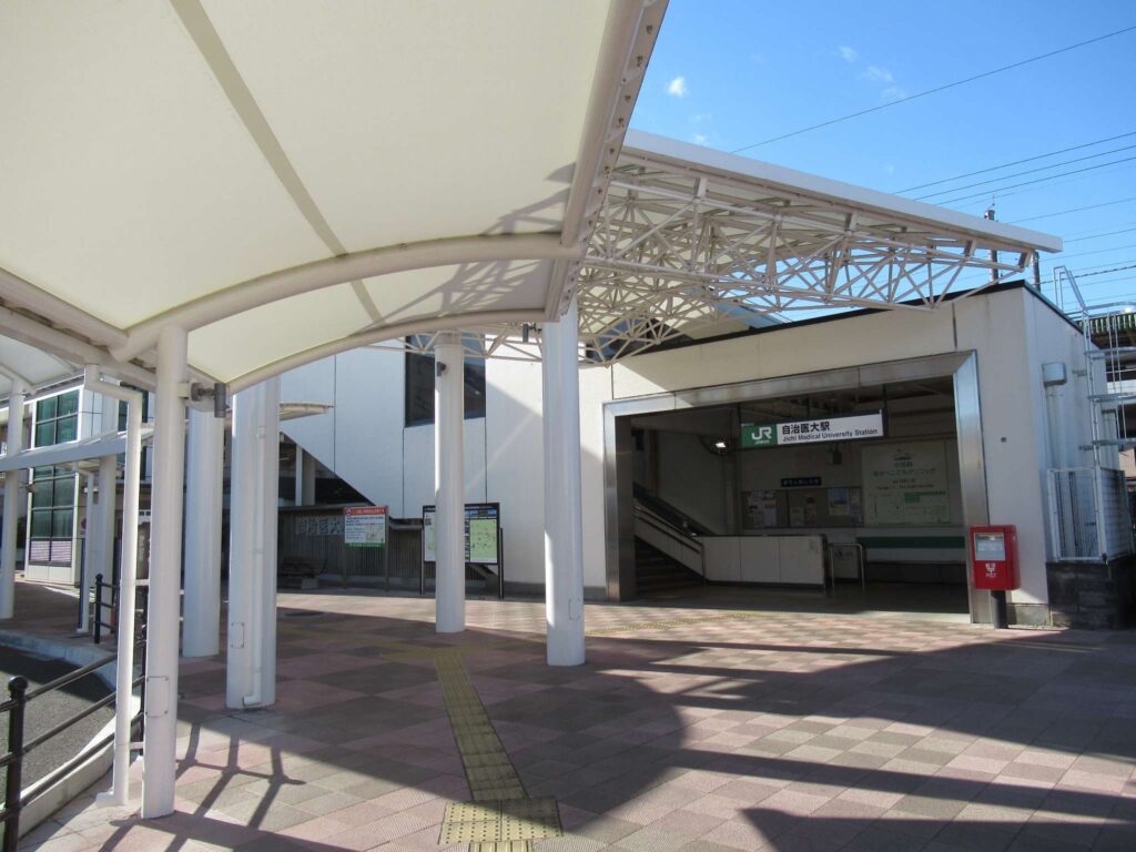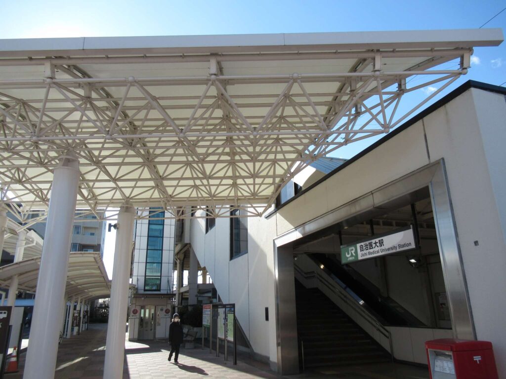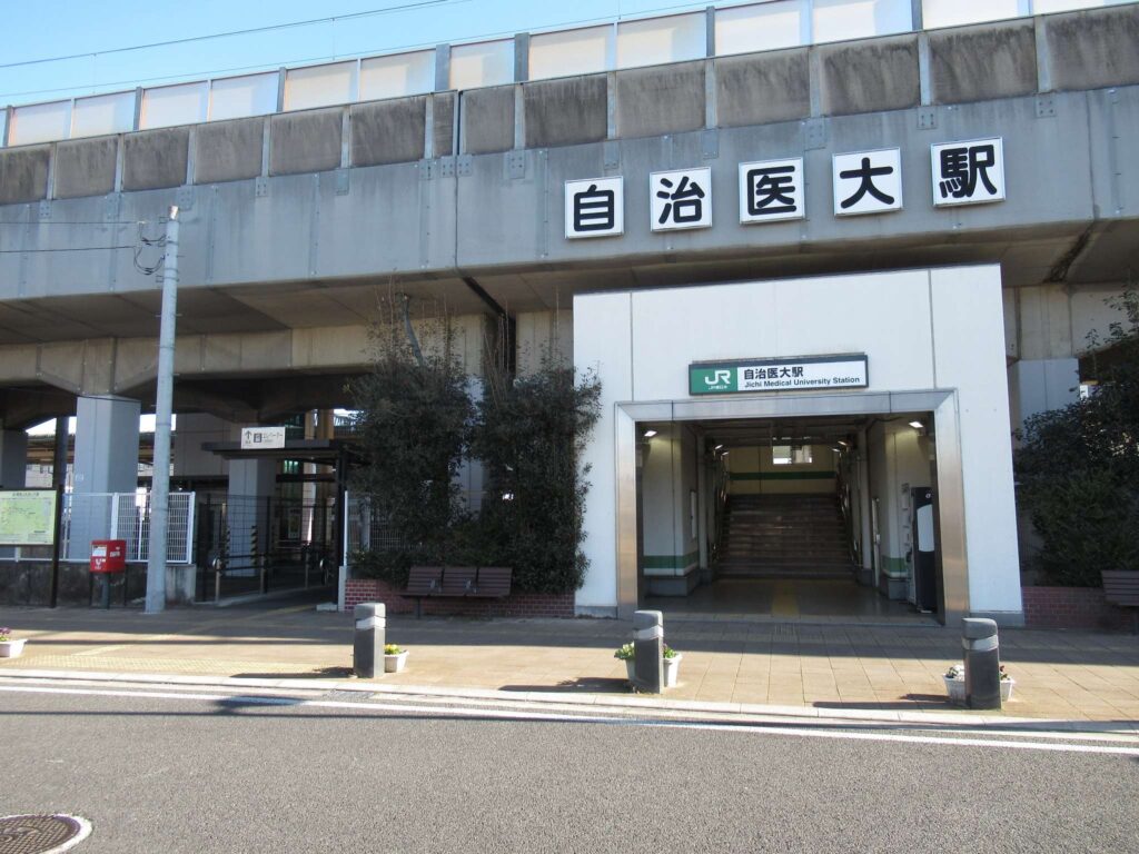DoraNeko東北本線の自治医大駅でございます。宇都宮線の愛称区間に含まれております。電化複線区間にある島式1面2線の地上駅で、東西自由通路の中に改札がある橋上駅となっております。新幹線の高架との間に留置線を作る計画があり、そのための用地が確保されております。