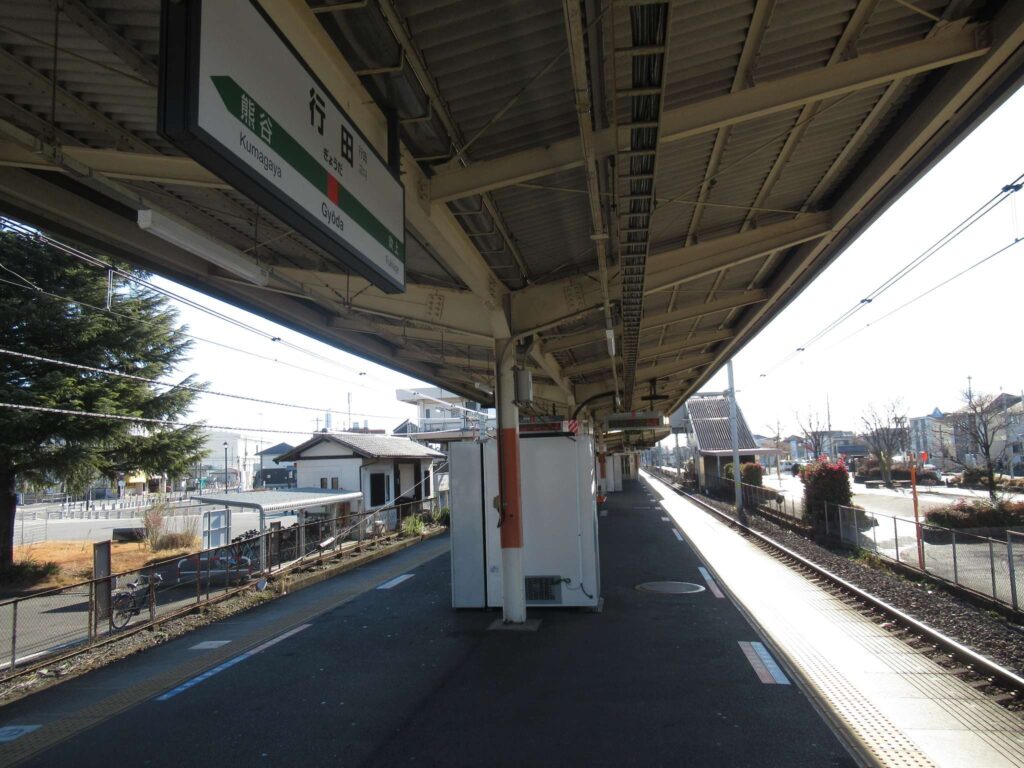 高崎線の行田駅でございます。電化複線区間にある島式1面2線の地上駅で、東西自由通路の中に改札がある橋上駅となっております。駅名の通り行田市内にある駅ですが、行田市の中心市街地とは約5km離れており、行田市中心市街地には秩父鉄道行田市駅がございます。