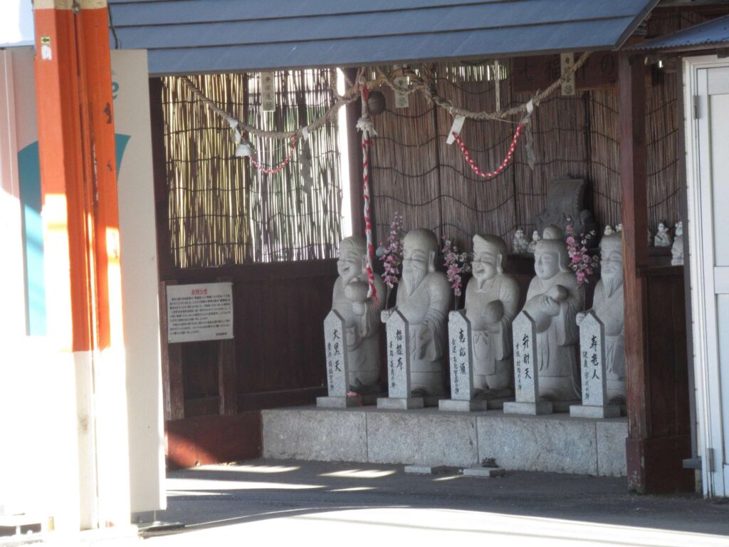 DoraNeko高崎線の神保原駅でございます。上り線のホームになんと七福神がございます。なんでなん?と調べますと、上里町周辺に「神」の付く地名が非常に多いことからこの駅は神様の里の玄関駅だ、と平成11年にJR社員が閃いたのがきっかけで、上里町内の石材店の協力を得て作ったものなのだそうですよ、そこの奥さん(←何処の奥さん?)。