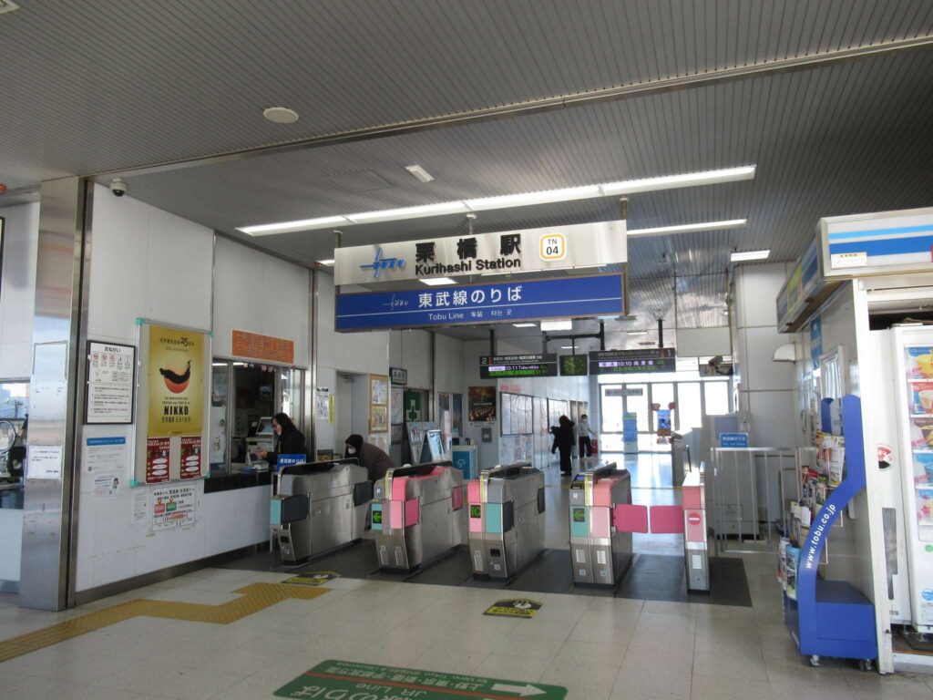 東武鉄道日光線の栗橋駅でございます。電化複線区間にある島式1面2線の地上駅で、東西自由通路の中に改札がある橋上駅となっております。隣接する東北本線との連絡線が設置されており、新宿駅 と東武日光駅および鬼怒川温泉駅間で特急列車を相互直通運転しておりますが、デッドセクションが設けられているため運転停車するのみでこの栗橋駅での客扱いはありませんですな。埼玉県立栗橋北彩高等学校などの最寄り駅となっております。