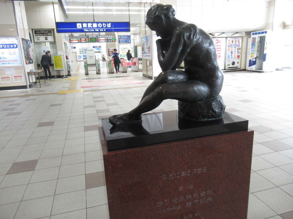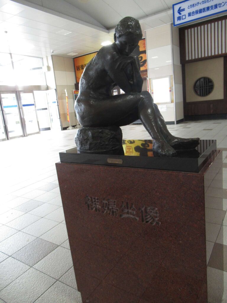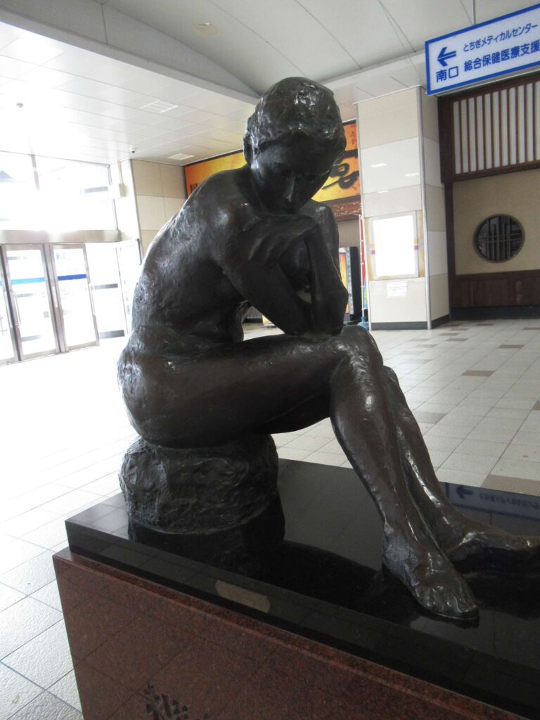 DoraNeko栃木駅の東武改札口付近にあった像でございます。岩下の新ショウガで知られる会社の社長さんが寄贈した像のようですな。地元ですからな。タイトルは、裸婦坐像…見た目そのまんまひがしですな。名付け方がラフでんな、なんちゃって(←大概にせえやジジイw)。