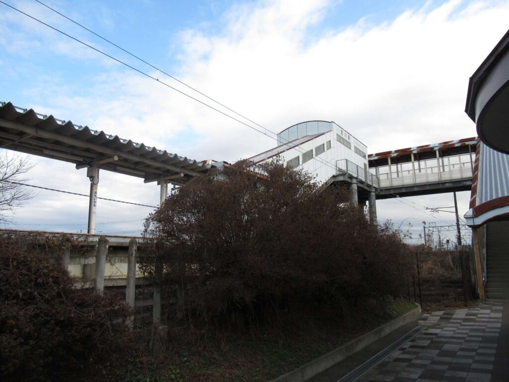 両毛線の思川駅でございます。単線電化区間にある島式1面2線の列車交換可能な地上駅となっております。階段と跨線橋のみの南北自由通路の中に改札がある橋上駅で、南口の地上にある駅舎の様に見える建物は商工会の建物でございます。栃木県立小山西高等学校などの最寄り駅となっております。
