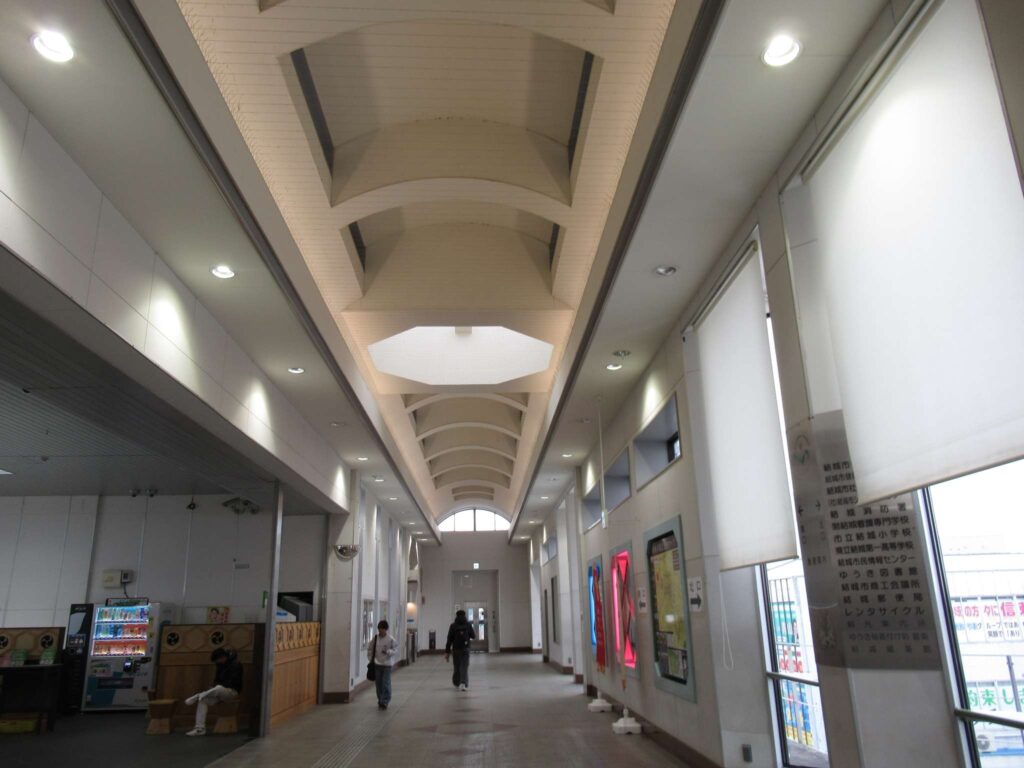 DoraNeko水戸線の結城駅でございます。単線電化区間にある単式島式複合型の2面3線、いわゆる国鉄型配線の列車交換可能な地上駅で、南北自由通路の中に改札がある橋上駅となっております。国の重要無形文化財に指定されている伝統産業として有名な結城紬の産地である結城市の中心駅でございます。茨城県立結城第二高等学校などの最寄り駅となっております。