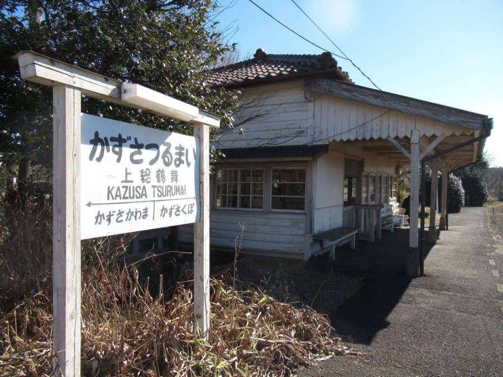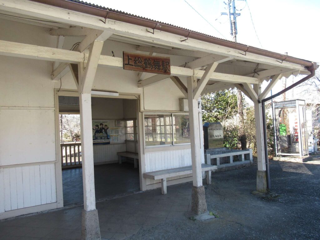 上総鶴舞駅(かずさつるまいえき)は、千葉県市原市池和田にある、小湊鉄道線の駅である。関東の駅百選に選定されており、駅本屋は国の登録有形文化財に登録されている。古くからの木造駅舎とそれに接する単式ホーム1面1線を有する地上駅である。木造駅舎を有する。公衆トイレと公衆電話、飲料の自動販売機が設置されている。現在は無人駅になっているが、有人駅時代に使用していた出札口などが残っている。線路を挟んだ反対側には、現在は使用されていない島式ホーム1面2線が残っており、構内には側線も敷かれている。当駅裏手には鶴舞発電所[注釈 3]の建物が残っており、構内はずれにはそれを記念する碑もある。1998年10月14日、関東の駅百選の第2回選定駅になっている。選定理由は「大正時代の開設当初の瓦葺屋根の駅舎で田園地帯にマッチした桜の名所にもなっている駅」。風情のある木造駅舎が残り、また東京から1時間程度と近いことから、映画やテレビドラマなどのロケ地として多数利用されている。