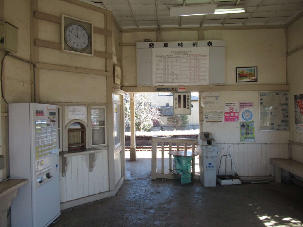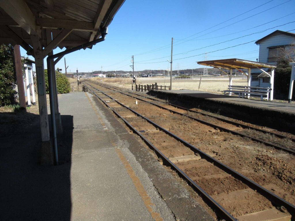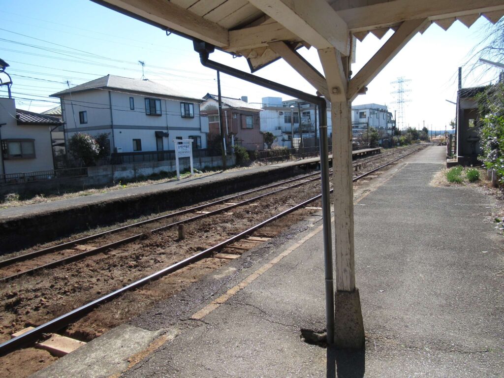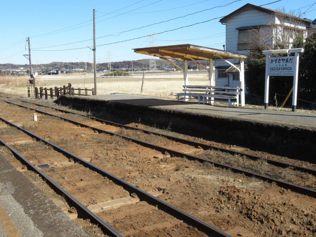 全線単線非電化の路線、小湊鉄道線の上総山田駅でございます。列車交換可能な相対式2面2線の地上駅で、国の登録有形文化財に登録されている木造平屋の駅舎がある無人駅となっております。ホーム間は遮断機等のない構内踏切で連絡しております。
