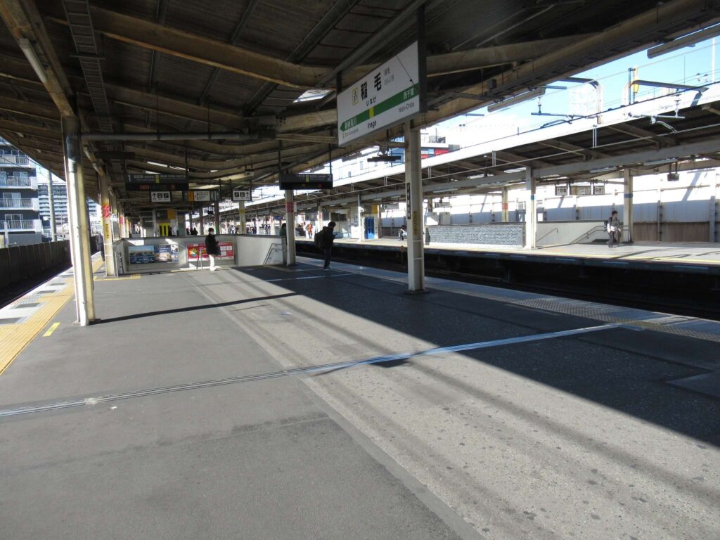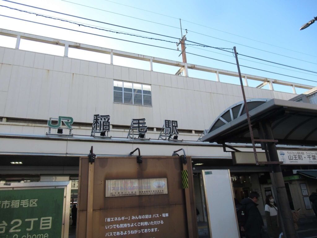 総武本線の稲毛駅でございます。高架複々線区間にある、横須賀・総武快速線の総武線快速と中央・総武緩行線の総武線各駅停車それぞれに島式ホームがある島式2面4線の高架駅となっております。文教地区でもあり、千葉市立千葉高等学校、千葉県立京葉工業高等学校、千葉県立千葉女子高等学校、敬愛学園高等学校、敬愛大学などの最寄り駅となっております。