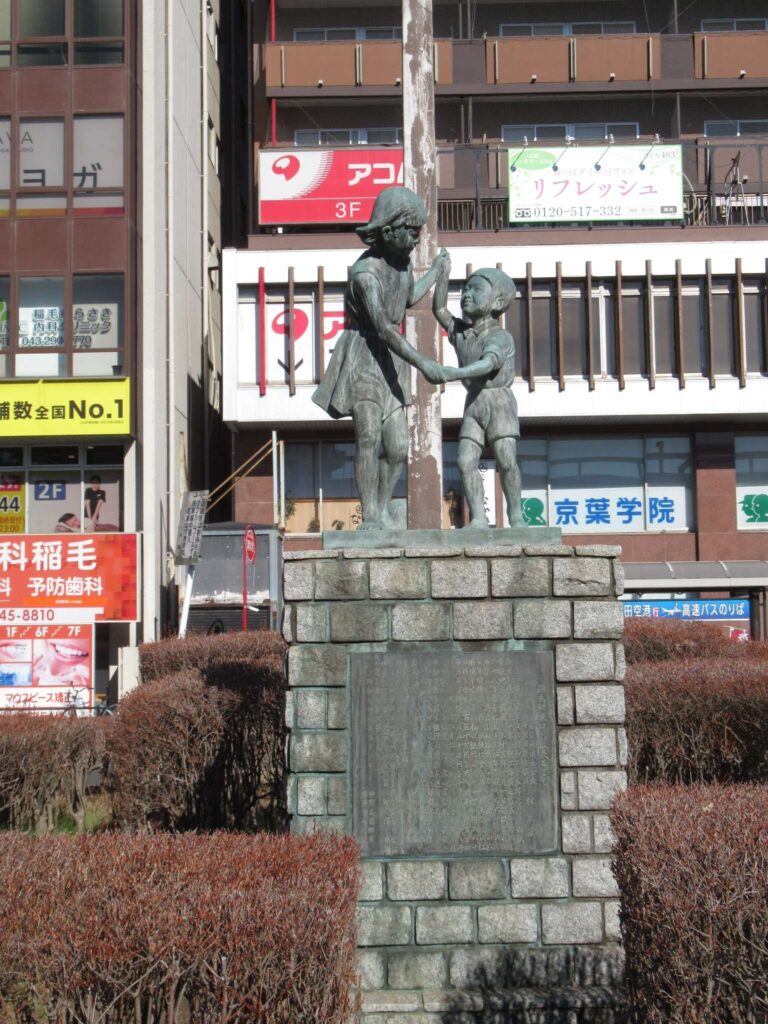 稲毛駅東口ロータリーの、ふれあい花壇の中に設置されている像でございます。姉と弟なんでしょうかね、残念ながら詳細は分からないのでございますよ、そこの奥さん(←何処の奥さん?)。