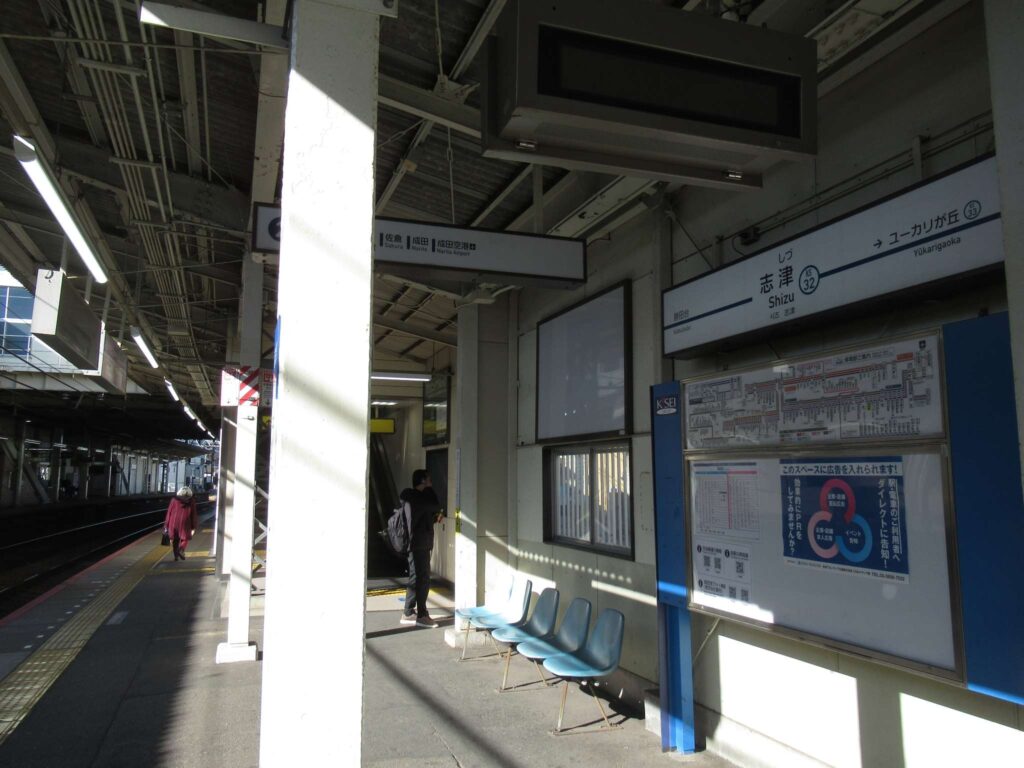 京成電鉄京成本線の志津駅でございます。複線区間にある相対式2面2線の地上駅となっております。ショッピングセンター「しづマイン」と直結する南北自由通路になっている跨線橋の中に改札がある橋上駅でございます。