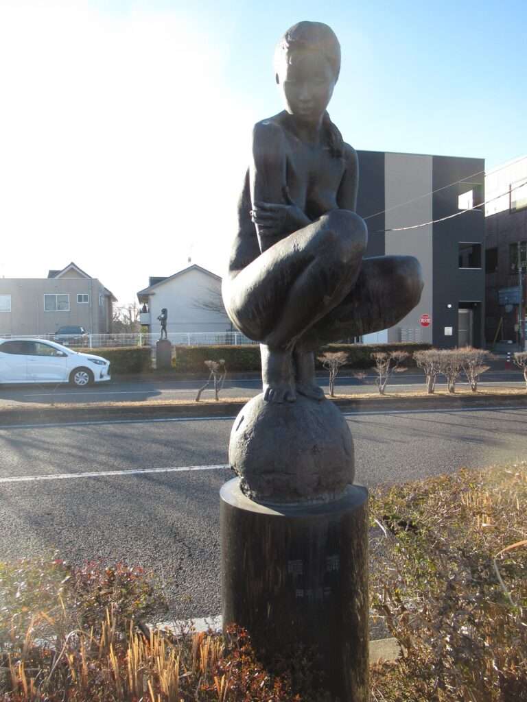 佐倉駅北口から国道296号に向かう道は「彫刻通り」と名付けられ、両サイドに野外彫刻が設置されております。その中の一つ「暖流」でございます。球体の上に中腰になっている女性裸像ですな。これは千葉県在住の彫刻家、岡本銕二さんの作品でございます。決してウンコ座りではありませんよ、そこの奥さん(←何処の奥さん?)。
