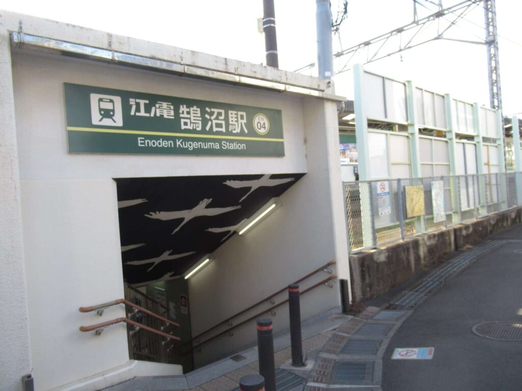全線単線電化の路線、江ノ電こと江ノ島電鉄の鵠沼駅でございます。列車交換可能な島式1面2線地上駅で、半地下になっている通路に改札がある無人駅でございます。江ノ電の駅では唯一のエレベーターがございます。駅の周辺は住宅地で、湘南学園中学校・高等学校などの最寄り駅となっております。