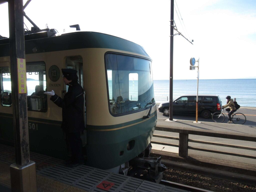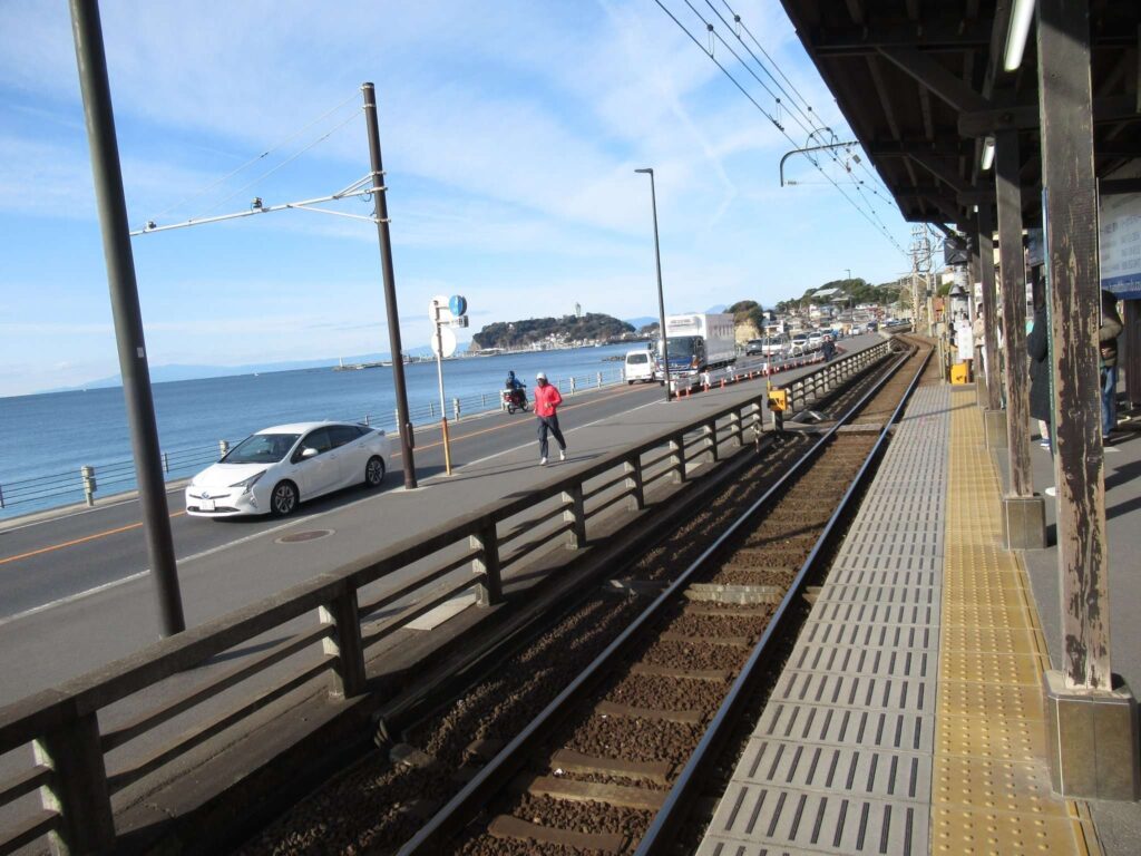 全線単線電化の路線、江ノ電こと江ノ島電鉄の鎌倉高校前駅でございます。地上駅で、単式1面1線の棒線駅となっております。鎌倉側に簡易な駅舎のある屋根付きホーム上にベンチが設置されております。目の前が海岸、湘南を代表するロケーションの駅として超有名になった駅であり、駅そのものが観光名所でございます。ワタクシの訪問時も電車が到着する度に乗降客がひっきりなしでございました。で、しばらく滞在して様子を眺めていたんですけれどね、恐らくは70%程がインバウンド、それもアジア各国の方々でしたね。ふと心配になったのが、この方達はどうやって運賃を支払ってるのかな?ICカードのタッチをするわけでもない、ワタクシのように一日乗車券購入して乗降している風にも思えないし…やばくないすか?