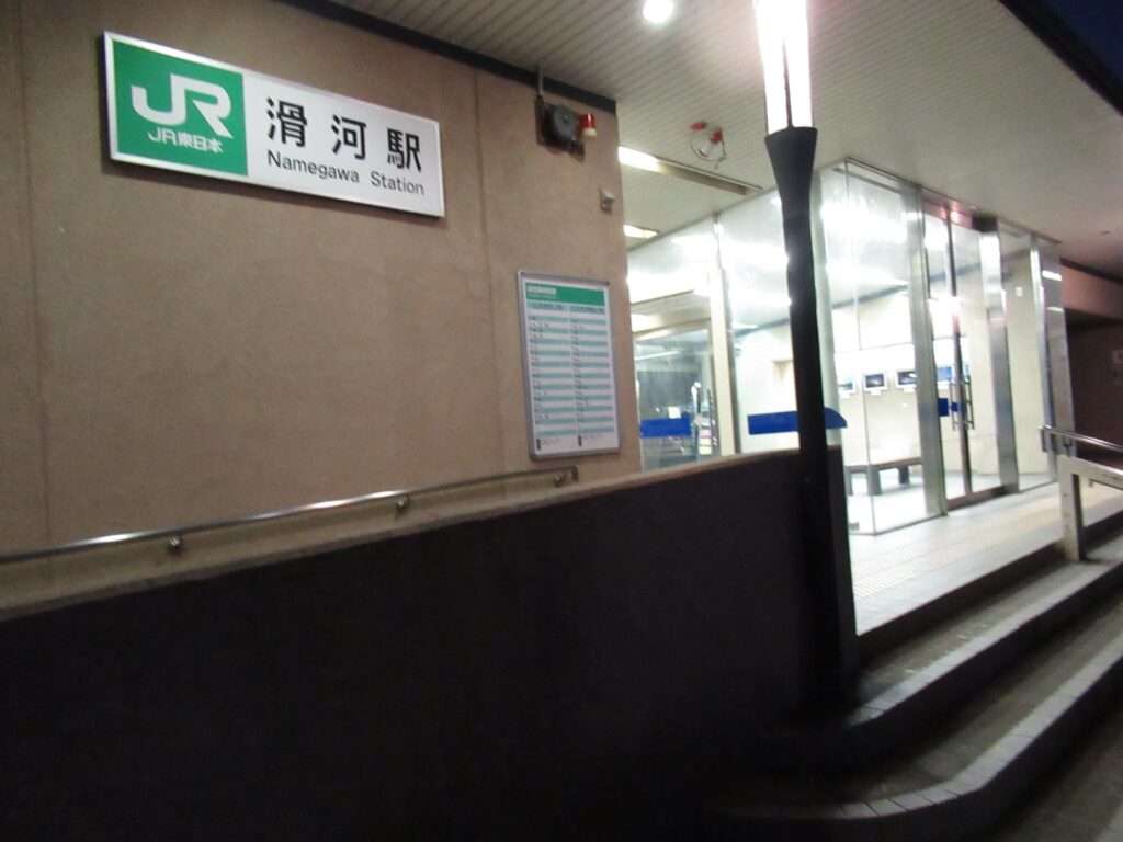 滑河駅(なめがわえき)は、千葉県成田市猿山にある、東日本旅客鉄道(JR東日本)成田線の駅である。相対式ホーム2面2線を有する地上駅。駅舎側が2番線、跨線橋を渡った方が1番線となっている。かつては中間に通過線があったが、撤去された。JR東日本ステーションサービスが受託する業務委託駅(成田統括センター(成田駅)管理)。簡易Suica改札機、近距離乗車券の自動券売機、乗車駅証明書発行機が設置されている。待合室はガラス張りで近代的な造りになっている。トイレは多機能トイレを併設した男女別水洗式である。旧駅舎だった頃は男女共用汲取り式であった。駅前ロータリーに隣接して駐輪場が整備されている。